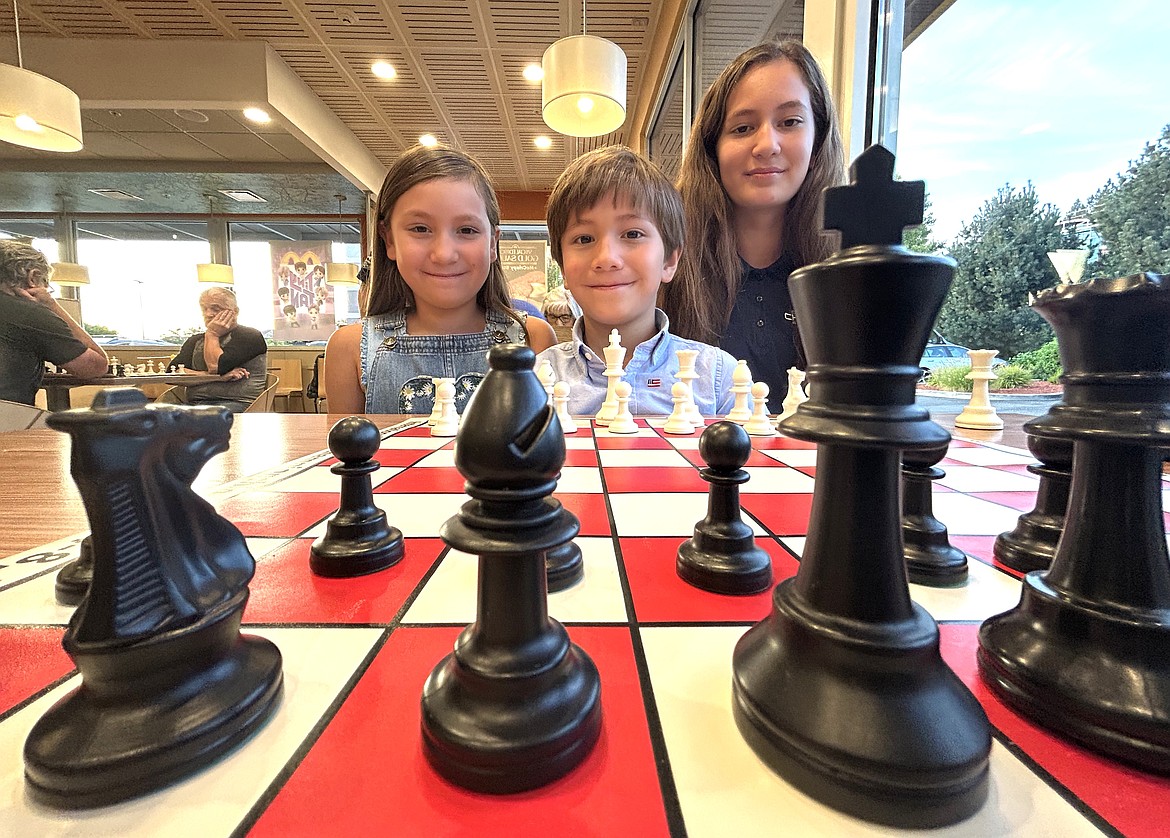 Leo Grace, 7, and sisters Sophia and Serena will be in the Barn Burner Chess Tournament on Saturday