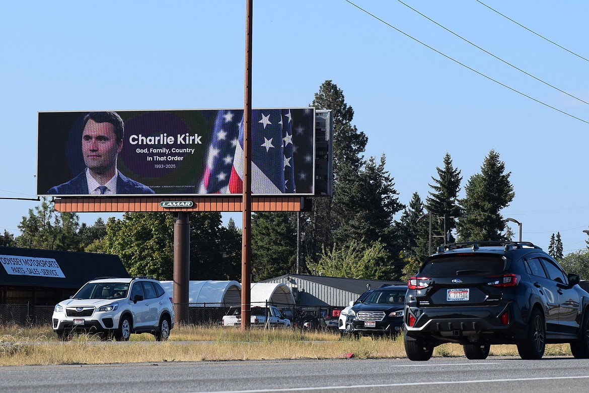 That’s what a new billboard along U.S. 95 near Hayden Avenue reads next to a portrait of Charlie Kirk, the conservative activist who was shot and killed last week while speaking at a college in Utah.