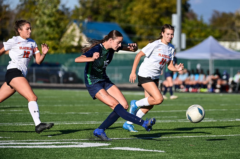 Flathead wasn’t without their chances though. In the 22nd minute a shot fiound a way around Glacier keeper Aerin Todd, but Kylie Shine was there to clear it off the line.
