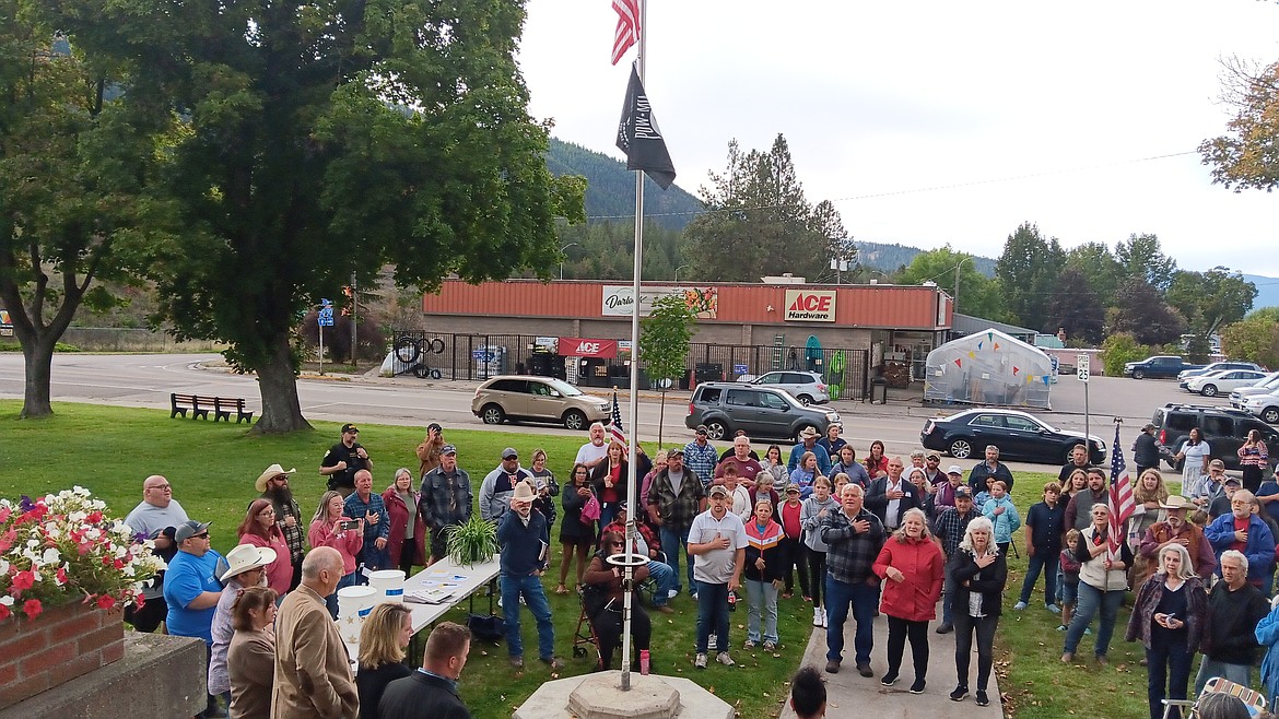 A celebration of life for conservative influencer Charlie Kirk was held Sunday evening on the steps of the Mineral County Courthouse. Kirk was assassinated last week while speaking on a college campus in Utah. Pastors, politicians and students shared words after the Pledge of Allegiance and the singing of the National Anthem. (Monte Turner/Mineral Independent)