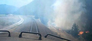 OVERHEATED EQUIPMENT, burning exhaust and sparks from routine track maintenance can all be a potential ignition source when fire danger is high, according to the National Interagency Fire Center. The heated elements may ignite dry vegetation along the railroad tracks, and, with enough fuel and oxygen, quickly grow into an uncontrollable blaze.