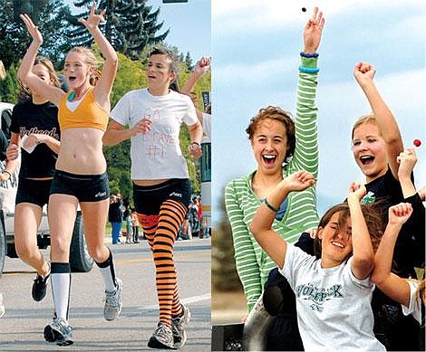 School spirit is high at Flathead and Glacier high schools in these September 2007 file photos as students carved separate identities as the Braves/Bravettes and the Wolfpack. Pictured in the left photo, Flathead High School cross-country team members Bri Ori, left, and Tera Klein run down Kalispell's Main Street during the school's homecoming parade. In the right photo, Glacier High School juniors, from left, Chaela Liss, Michelle Schuman and Ali Armstrong rev up fellow students while riding on top of their float during the school's first spirit week parade at the school. (Karen Nichols and Garrett Cheen/Daily Inter Lake file photos)ARTICLES BY HILARY MATHESON
