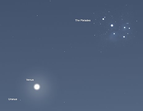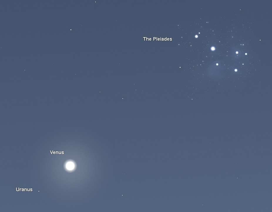 April 23 – Venus, Uranus, and the Pleiades (M45)