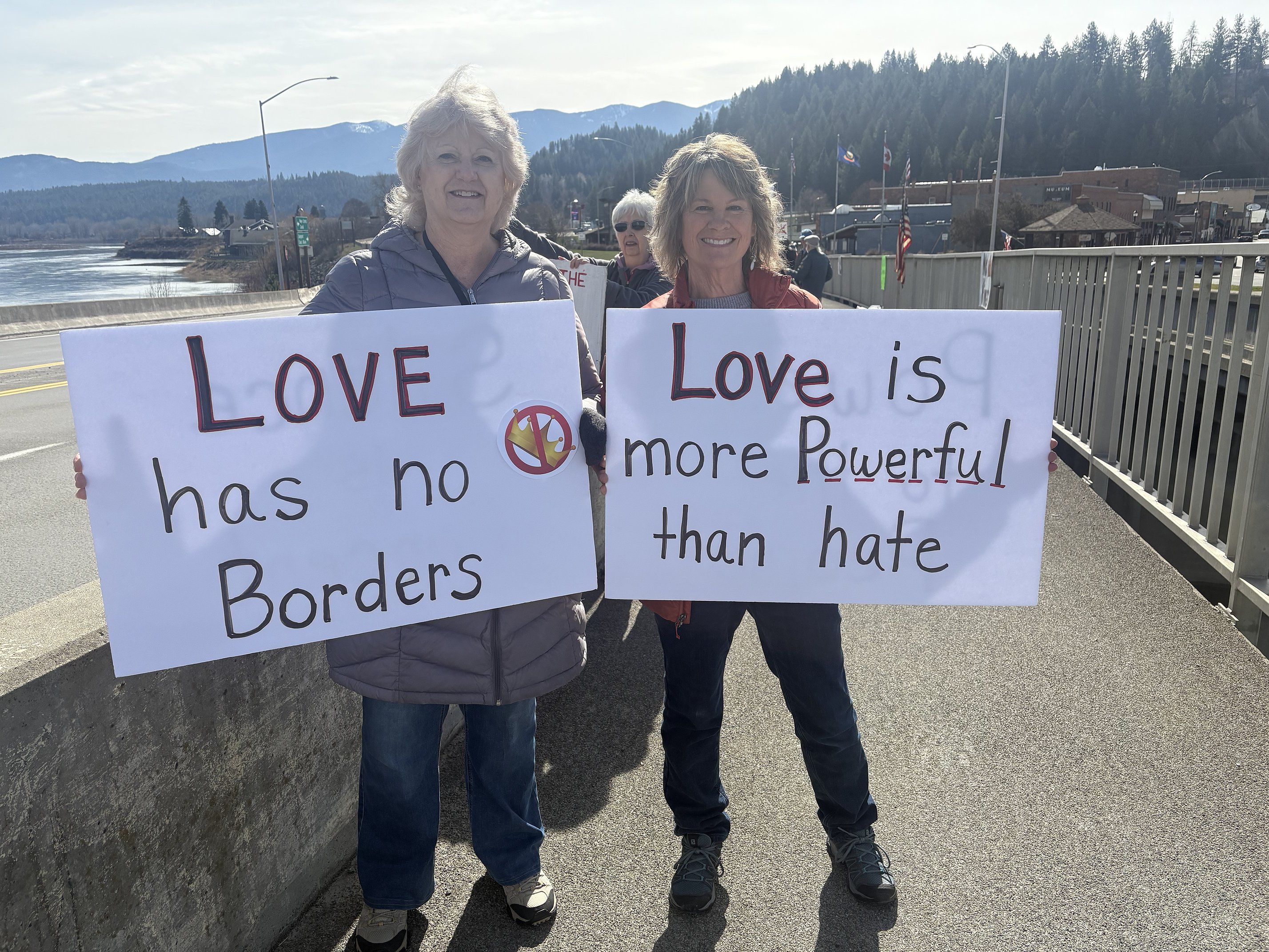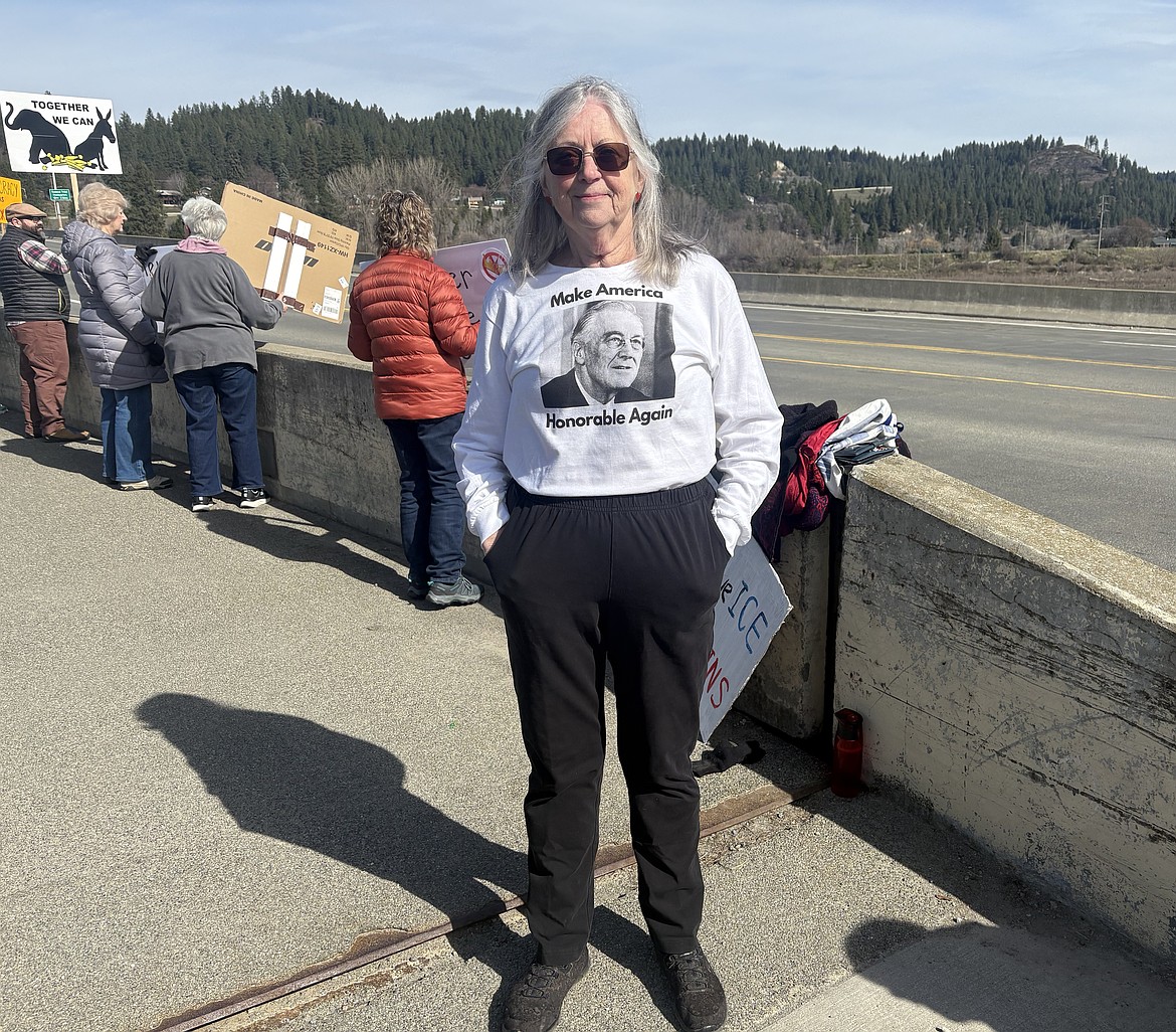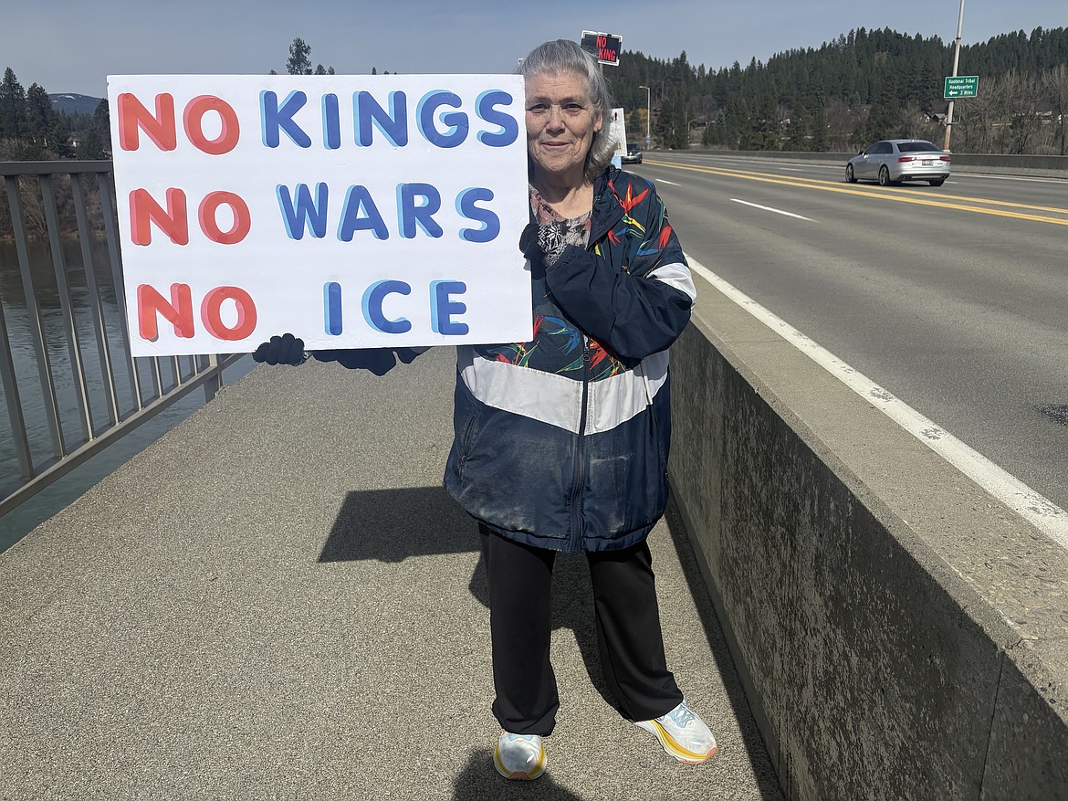 BONNERS FERRY — For the third time since June, the Kootenai River Bridge in Bonners Ferry was the site of a “No Kings” protest as about 30 people gathered with signs reading “America is a Democratic Republic, not a kingdom” and “No kings, no wars, no ICE” on March 28.