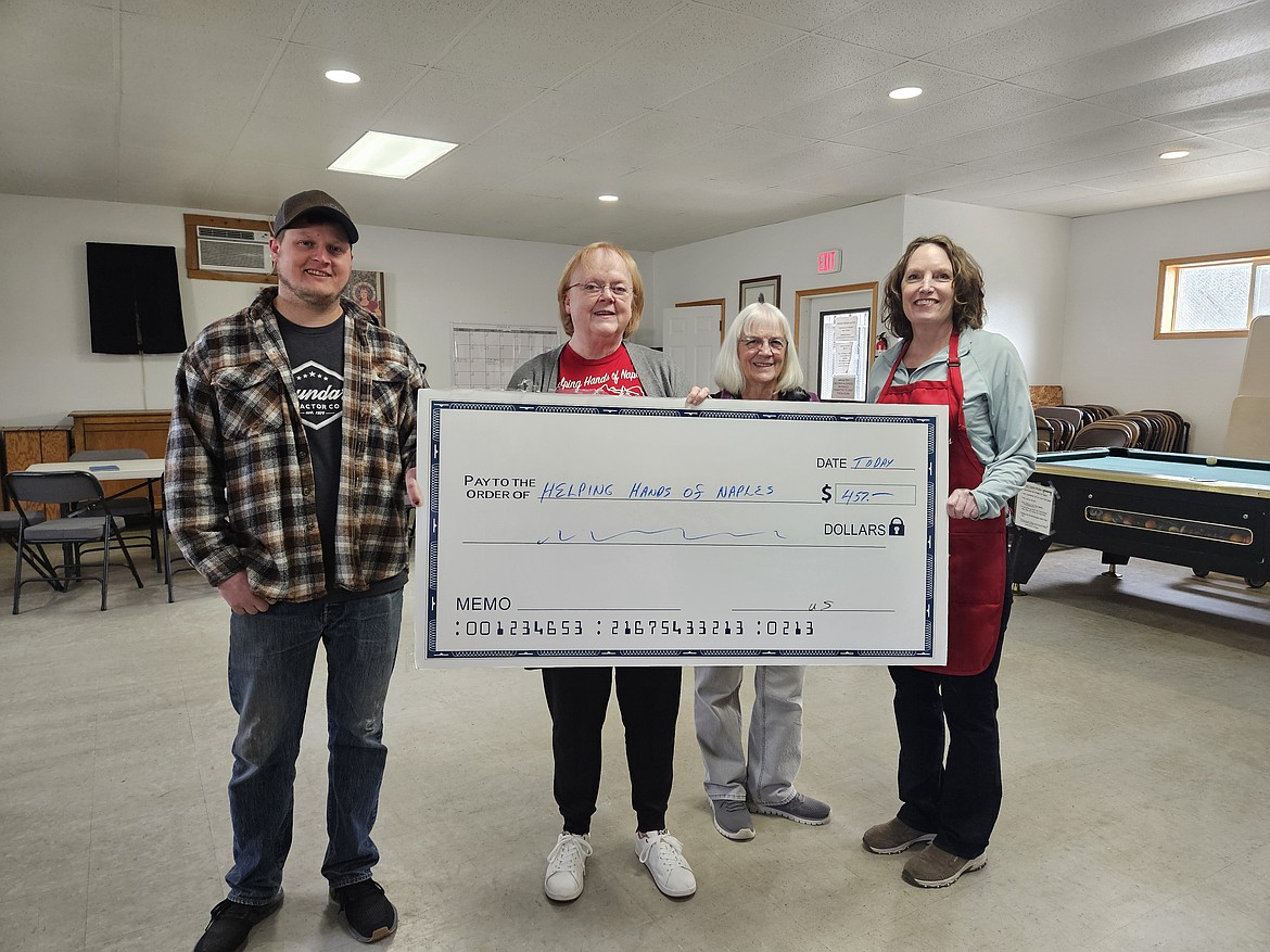 Bonners Ferry Eagles Aerie No. 3522 recently donated $457 to Helping Hands of Naples. The funds represent the full amount raised at the March community breakfast.