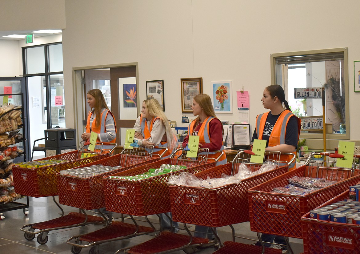 Another contingent of MLCA students was assisting at the Moses Lake Food Bank, bagging up onions and bell peppers and helping with distribution when the doors opened at 11 a.m. The help was welcome, said staffer Robert Hipolito, because his supply of hands is variable.