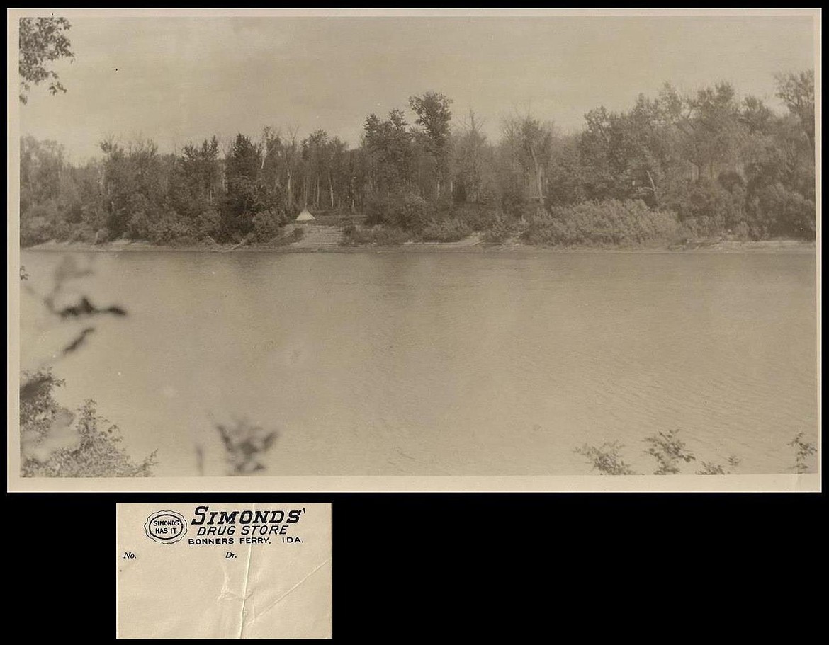 During Simonds’ time in the drug store, he provided the service of developing film into photographs. This photograph has a sticker on the back from the drug store. Not only does the photo tell the story of a Kootenai lodge on the riverbank, but also that it was developed by C. D. Simonds.