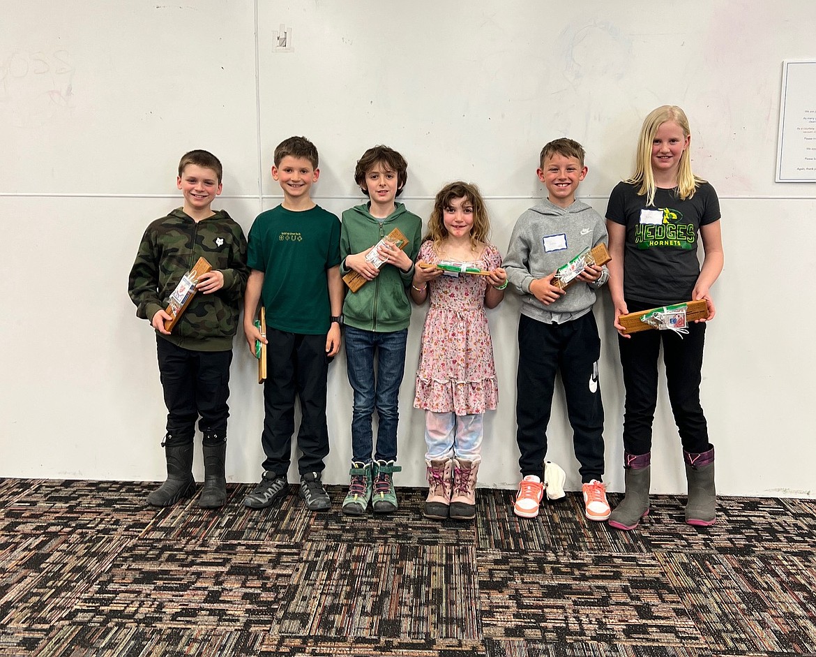 Pictured from the right are the winners, first place from Hedges School are Bella Dagle and Cade Hofeldt, second place from Peterson School are Adeline Horne and Walter Alberton, and third place from Stillwater Christian School are Crue Basler and Cole Beard.