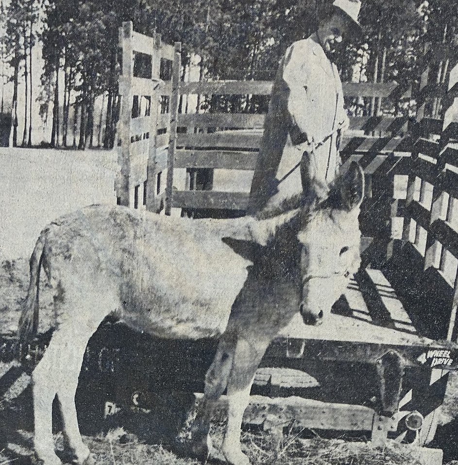 • A Burro, Too: A burro was supposed to be part of Mark Richeson’s animal promo for the opening of his Markshire Club. Remember? The owner brought in seven buffalo to attract customers. But a burro, named Harry Truman, didn’t cooperate. He hee-hawed too much. The noise kept Richeson and neighbors awake. So, Harry was sacked. And the docile buffalo starred during the Markshire opening April 4, 1956.
