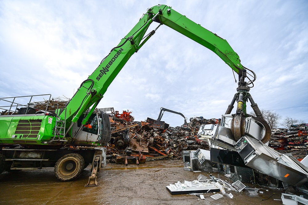 At one point, scrap haulers that are busy sorting refrigerators left by Fred’s Appliances fling them through the air effortlessly. Standing far back with hard hats on, it’s another reminder that the work has to prioritize safety.
