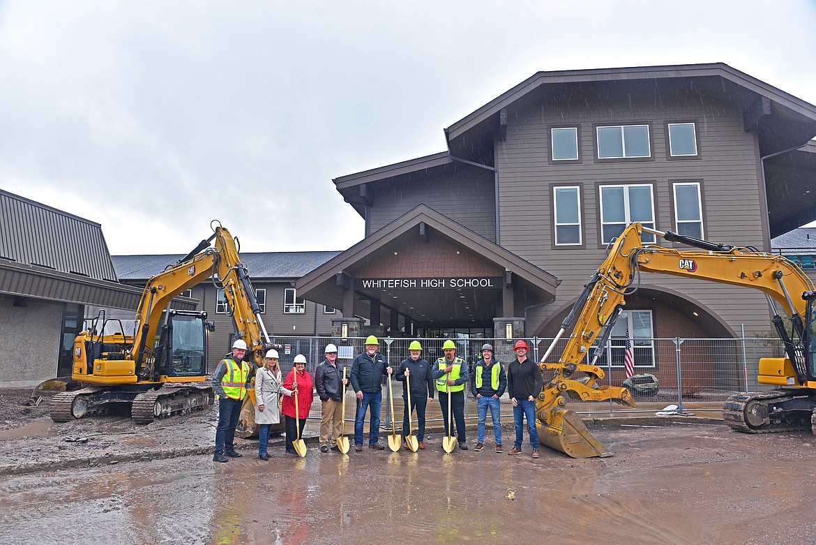 Whitefish School District broke ground on the Whitefish High School expansion project March 23. On a rainy afternoon last week, project organizers took a celebratory groundbreaking photo.