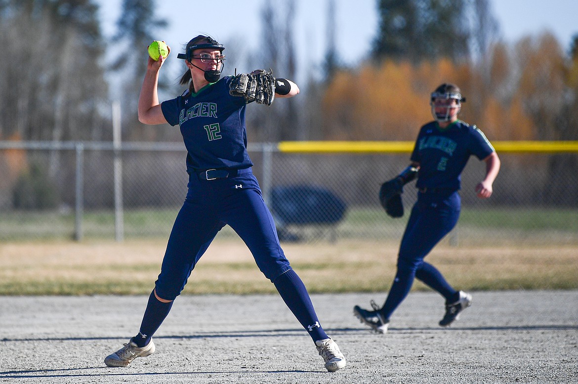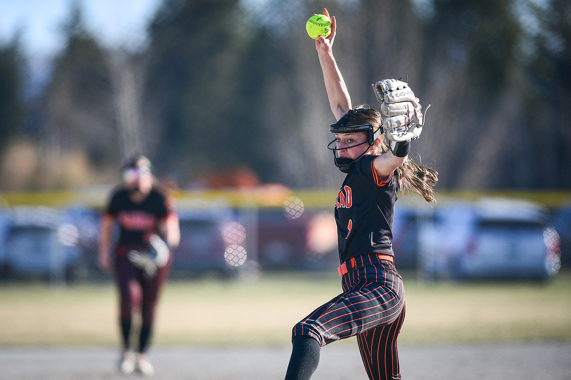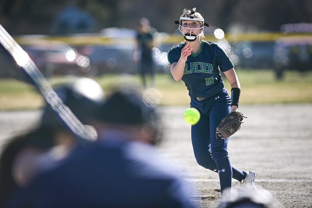 Glacier pitcher Olivia Warriner (10) delivers against Flathead at ABS Park on Thursday, April 9. (Casey Kreider/Daily Inter Lake)Casey Kreider