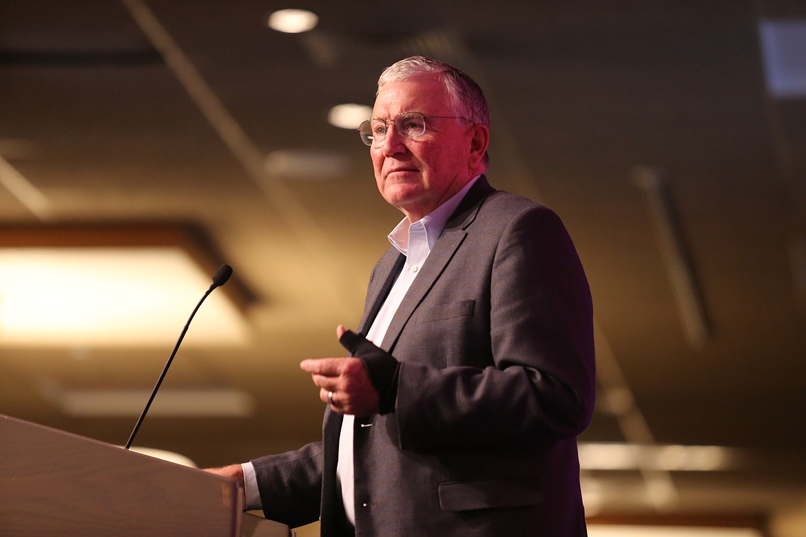 Idaho Gov. Brad Little was one of several speakers who pointed to North Idaho College’s return to good standing, secured after a slate of candidates endorsed by NIR swept three seats on the board of trustees, as an example of what can be achieved when voters engage.