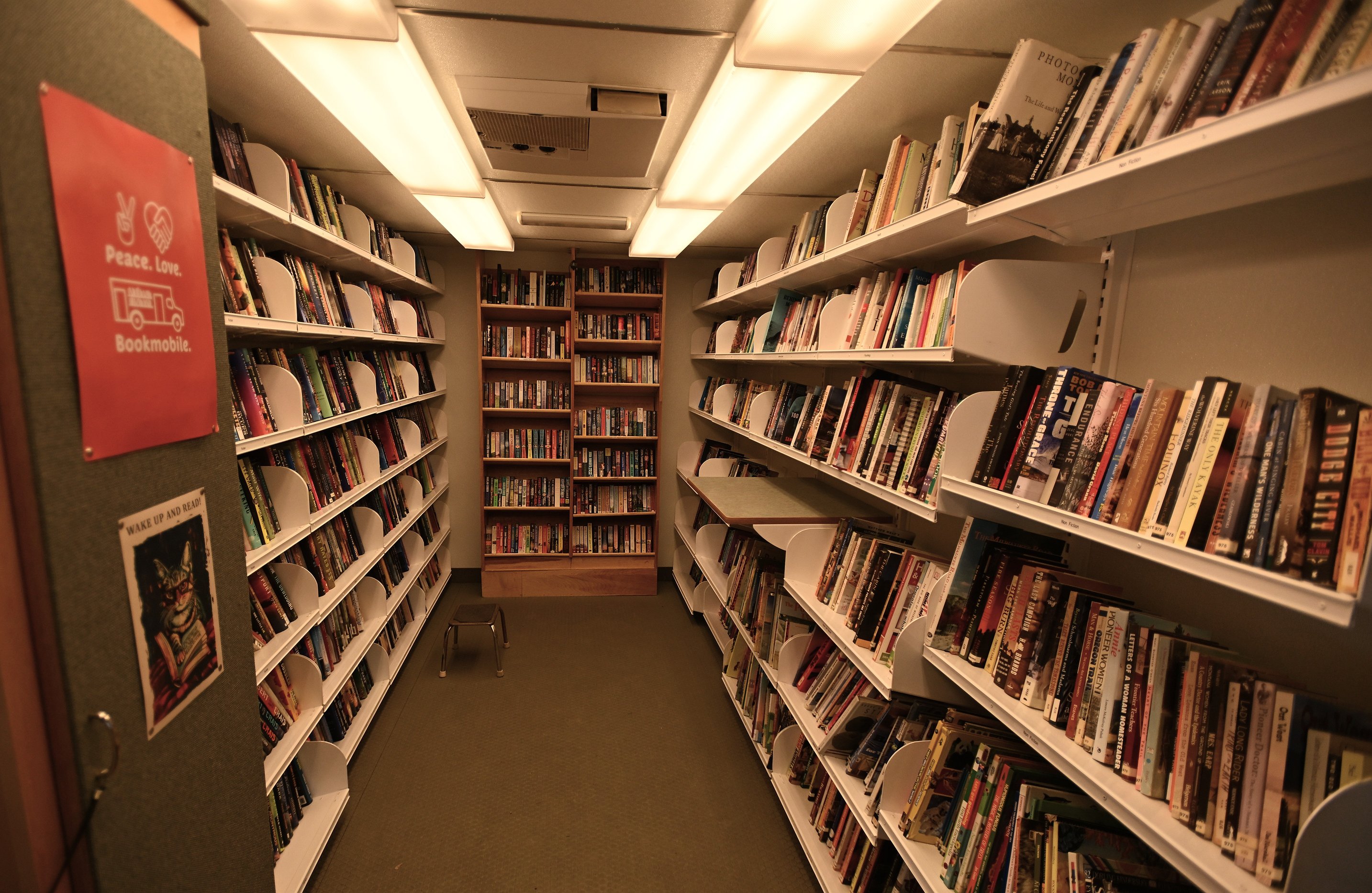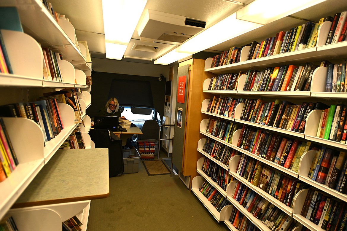 The Sanders County Bookmobile provides a selection of 5,000 books in genres including fiction, nonfiction, young adult and children. Half the books are carried on tilted shelves inside the bookmobile, and the rest are stored in a barn in Plains.
