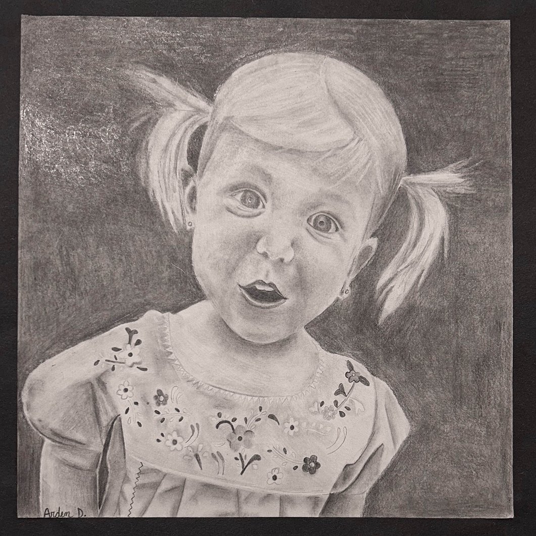 "Good Morning" by Stillwater Christian School eighth grader, Arden Dartez, graphite pencil. (Photo courtesy of the Glacier Art Museum)