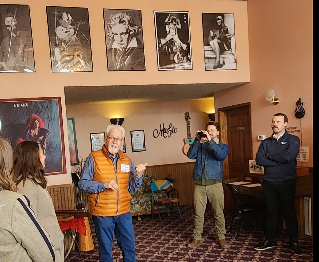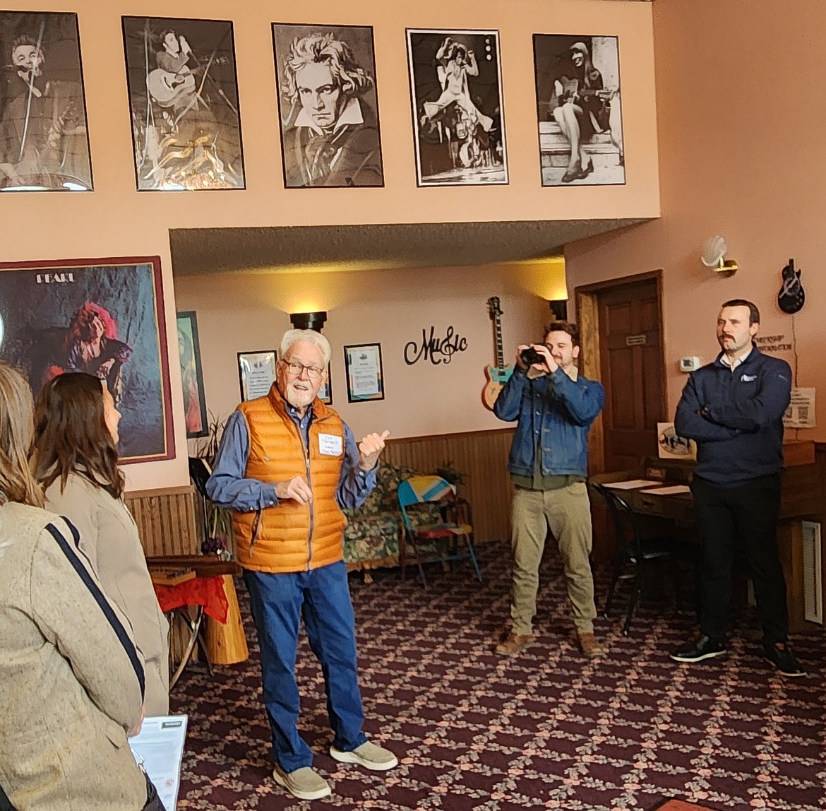 The group then walked across Main Street to the Pearl Theatre. Coy Theobalt gave a history of the former Entertainer, built in 1917, which the Western Montana Musicians Cooperative now calls home. The group moved into the Pearl a year ago, and built a new stage in the former movie theatre to take advantage of the amazing acoustics in the intimate space.