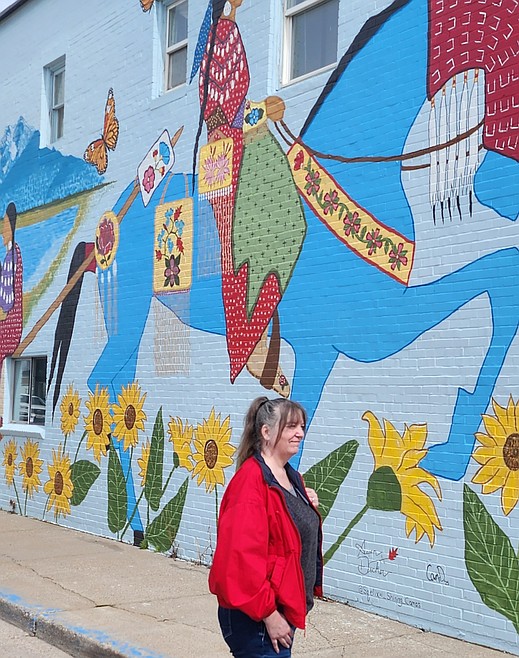 Around the corner on Fourth Avenue, two murals stretch across an enormous brick wall. One was painted by Cheyenne Renee, a muralist from Virginia, and highlights native birds, wetlands and the Mission Mountains. The other portion was created by local artists Cameron and Aspen Decker, who injected Salish and Kootenai culture onto their share of the wall, with Indian women, horses and also the Flathead River, the mountains, and bitterroot and balsam root, important plants to the Tribes.