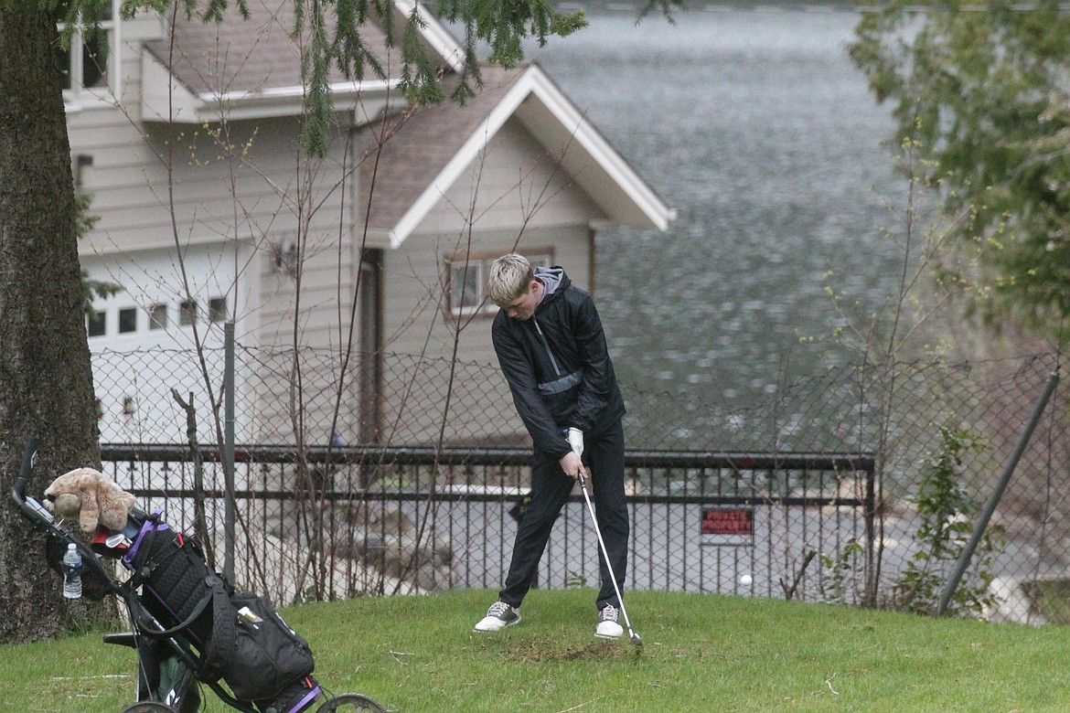 MARK NELKE/Press Johnny Stovern of Kellogg hits from the rough on the 10th hole at Twin Lakes Village Golf Course during the Timberlake Invitational on Thursday.