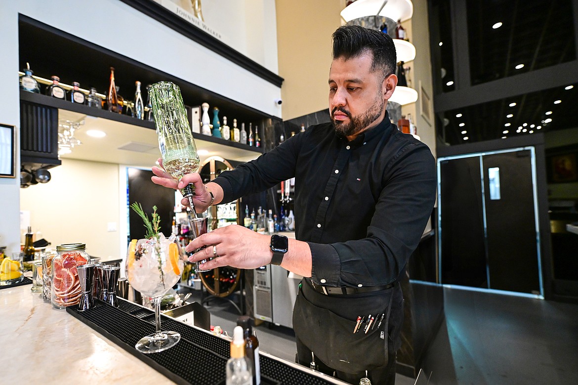 Bartender Hector Ramirez makes a Tangueray Gin No. 10 and tonic at Casa Luna in Kalispell on Wednesday, April 15. (Casey Kreider/Daily Inter Lake)Casey Kreider
