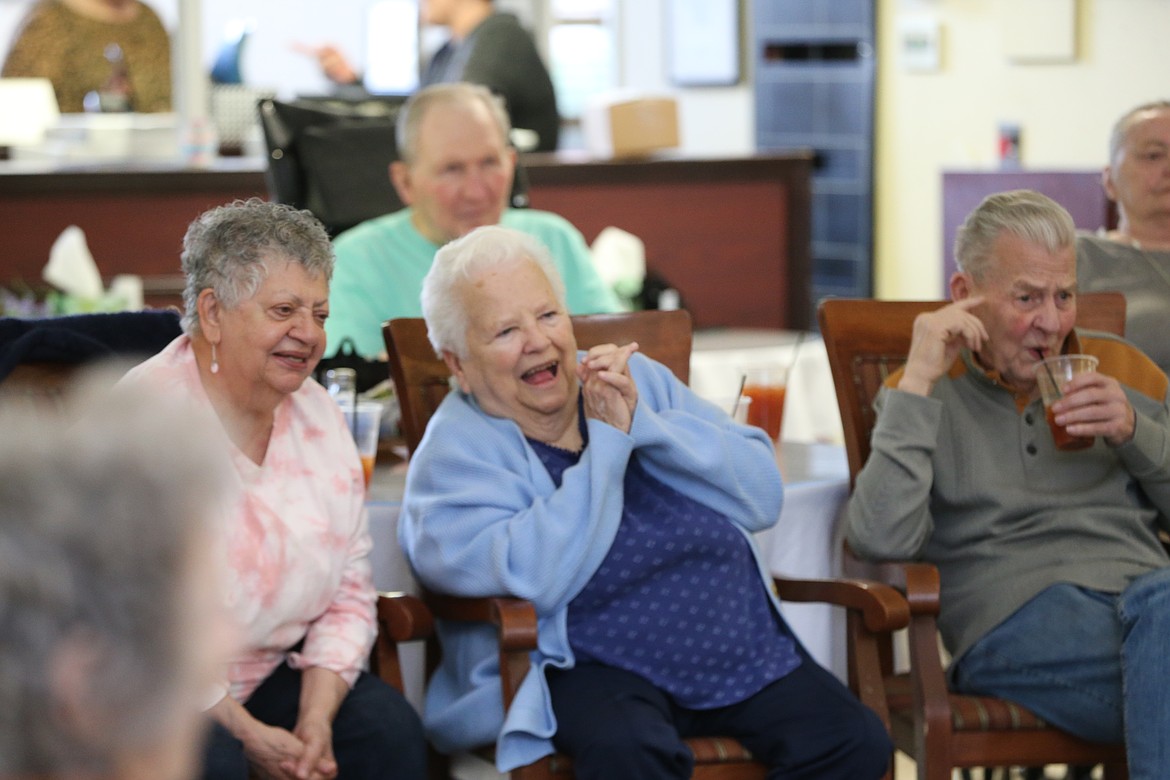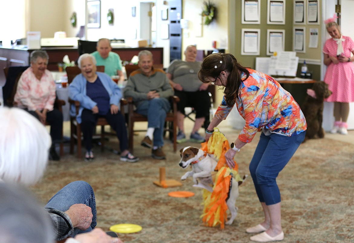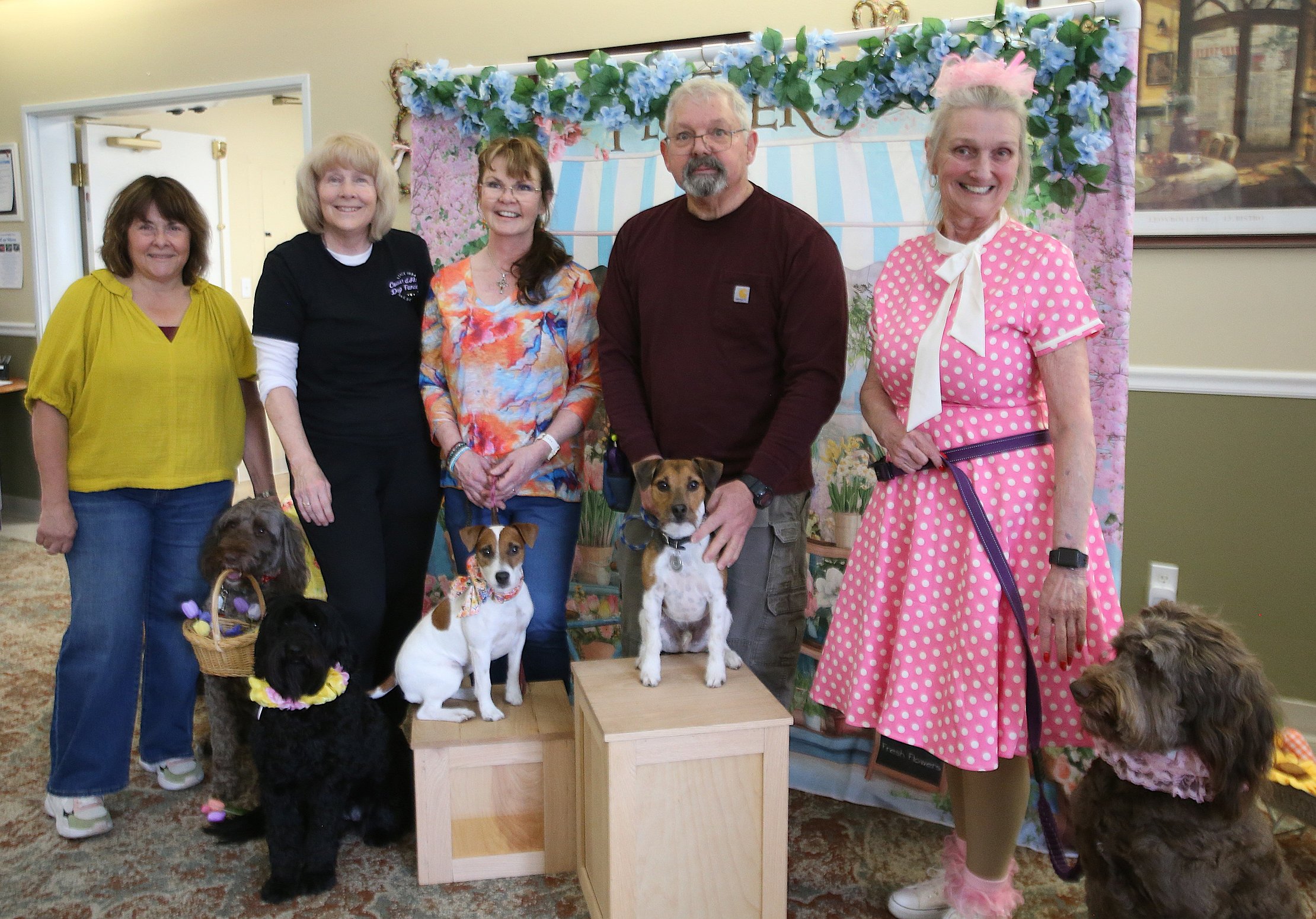 The Prancing Paws team visited Legends Park Assisted Living for a feel-good Friday afternoon, filled with upbeat music, joyful residents and adorable dogs. On deck for the entertainment was Lickfold with 6-year-old Labradoodle, Bella; Carie Sexton with 3-and-a-half-year-old Jack Russel terrier Kimber; Terri Sexton with 3-and-a-half-year-old Jack Russel terrier Tucker; Nancy Pawlac with 8-year-old Portuguese water dog Bodhi; and Sue Stiles with 5-year-old Australian Labradoodle Zola.