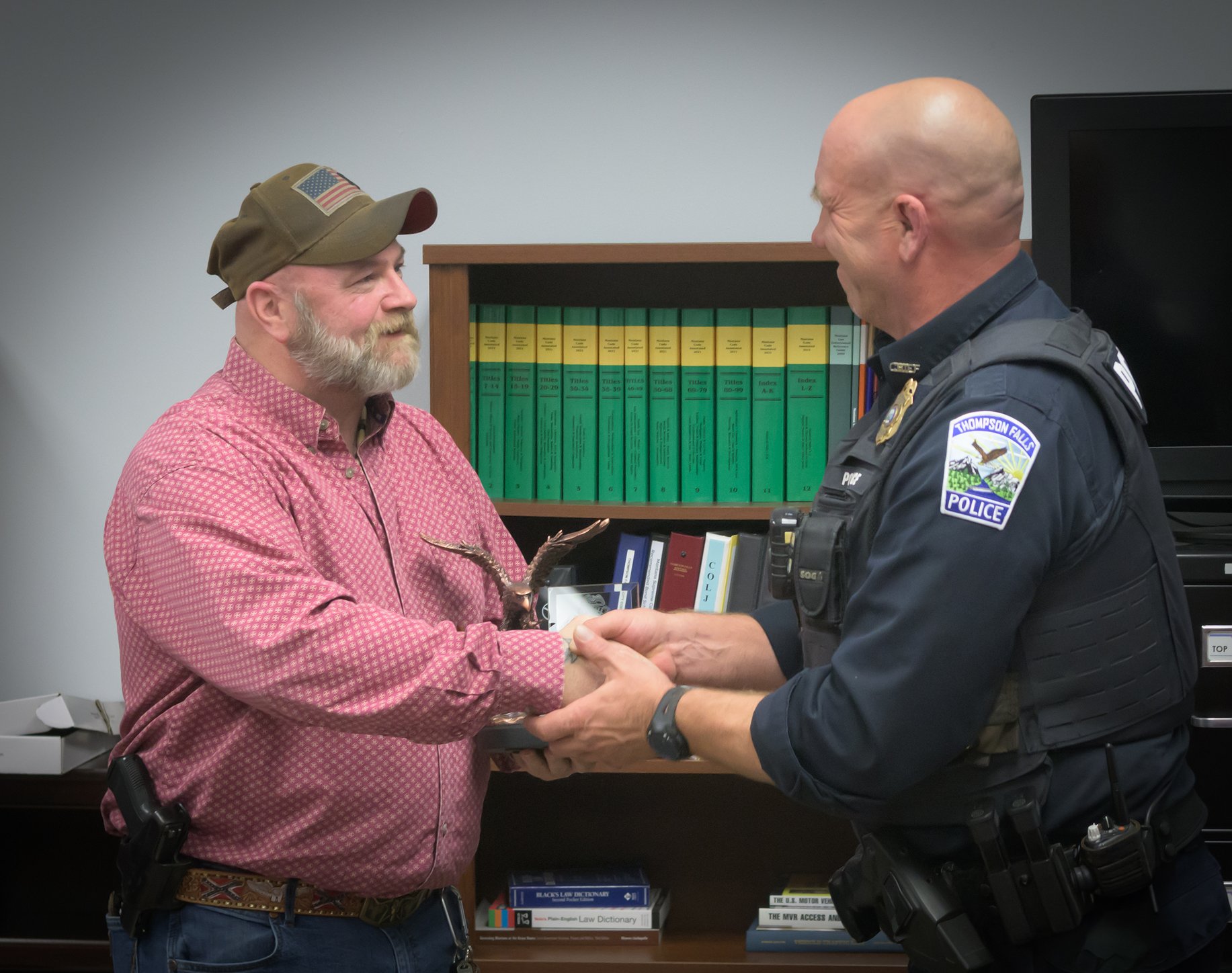Thompson Falls Police Chief Christopher Nichols was present at the meeting to recognize retiring officer Roy Scott. Scott began working for the Thompson Falls Police Department in 2017. He received a standing ovation from those in attendance and commented that it had been an honor working for the people of Thompson Falls.