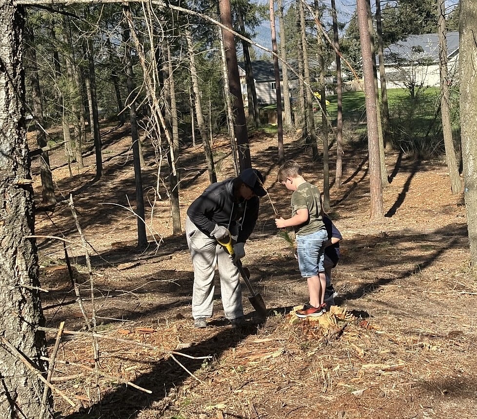 The event honored Ken Irons, who passed away in November, after living in Boundary County for 80 of his 91 years. His children, Don Irons and Cyndi Clark, attended the tree planting and watched as students planted trees that will grow for generations.