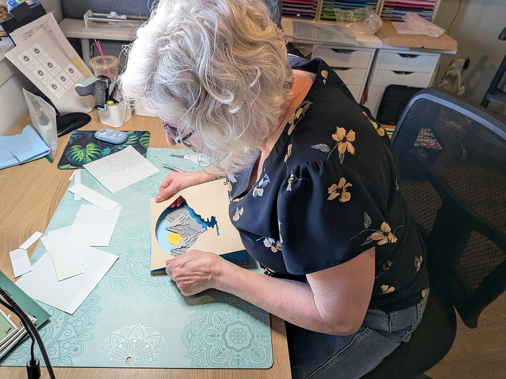 The paper artist said her handmade cards are top sellers, as well as her "Mountain Stream" shadow box.
