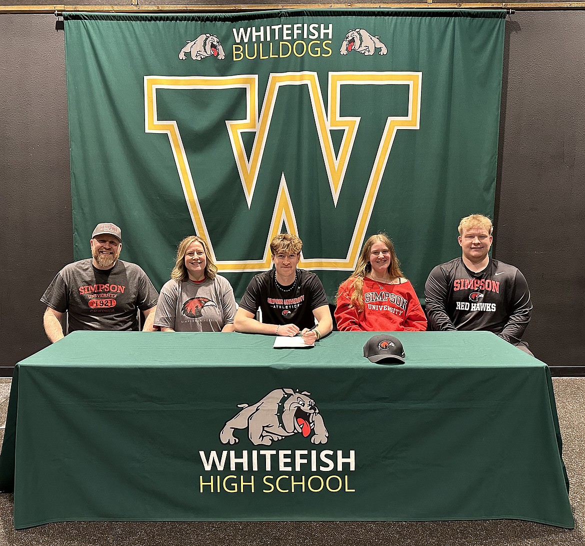 Cooper Akey is heading to Simpson University in Redding, California, to play football. Joe Akey, Sarah Akey, Cooper Akey, Brynley Akey and Ashton Akey.