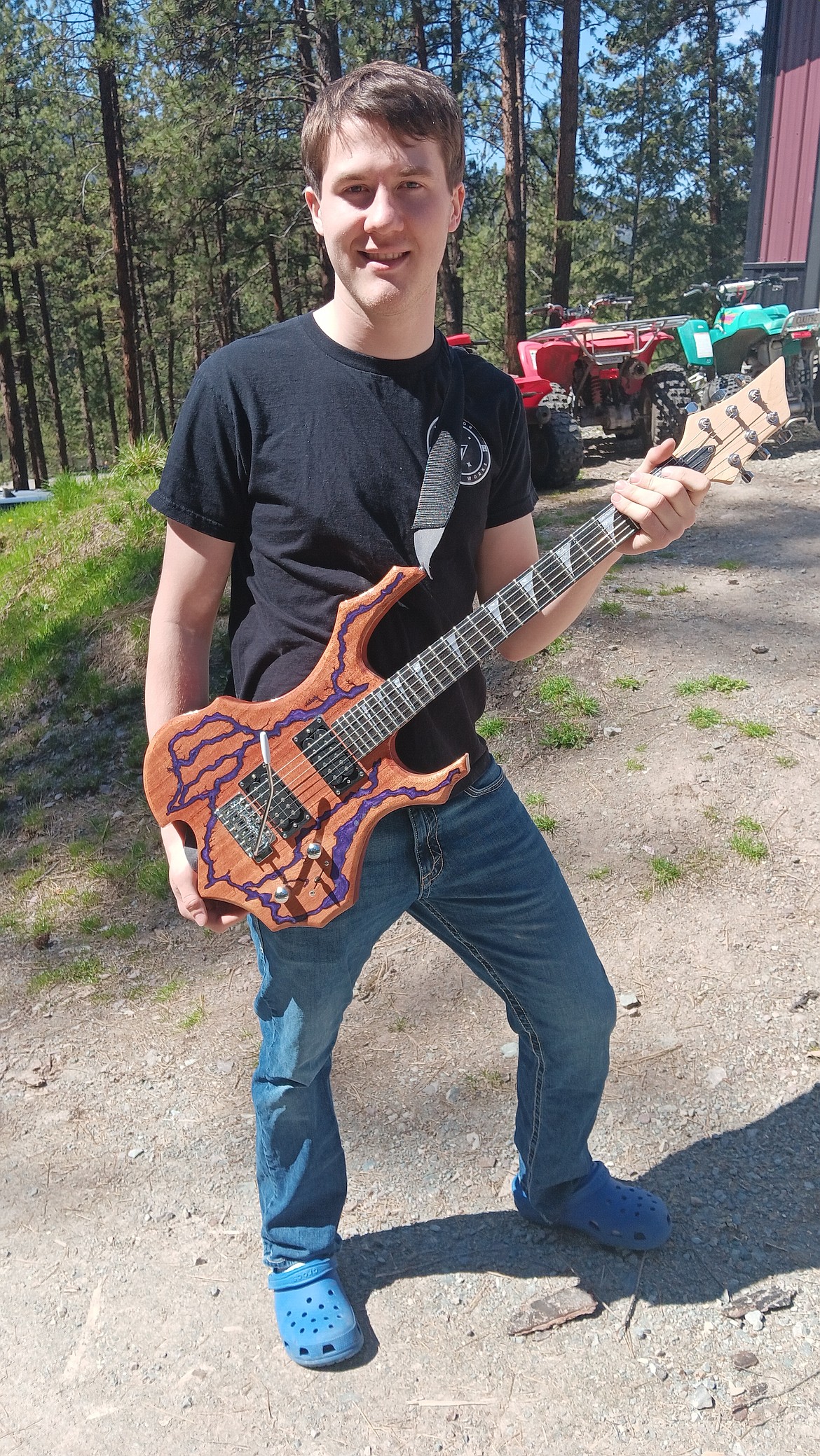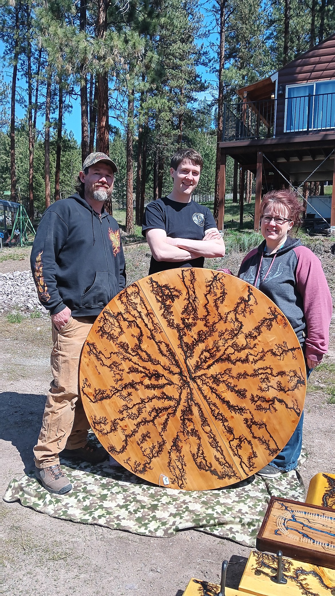 At the heart of his business is a unique art form known as Lichtenberg wood burning, which is a process that uses high-voltage electricity to create intricate, tree-like patterns in various types of wood. Working with a neon sign transformer generating up to 10,000 volts, Horn produces one-of-a-kind designs on everything from electric guitars to cribbage boards, coat racks, and even full dining tables.