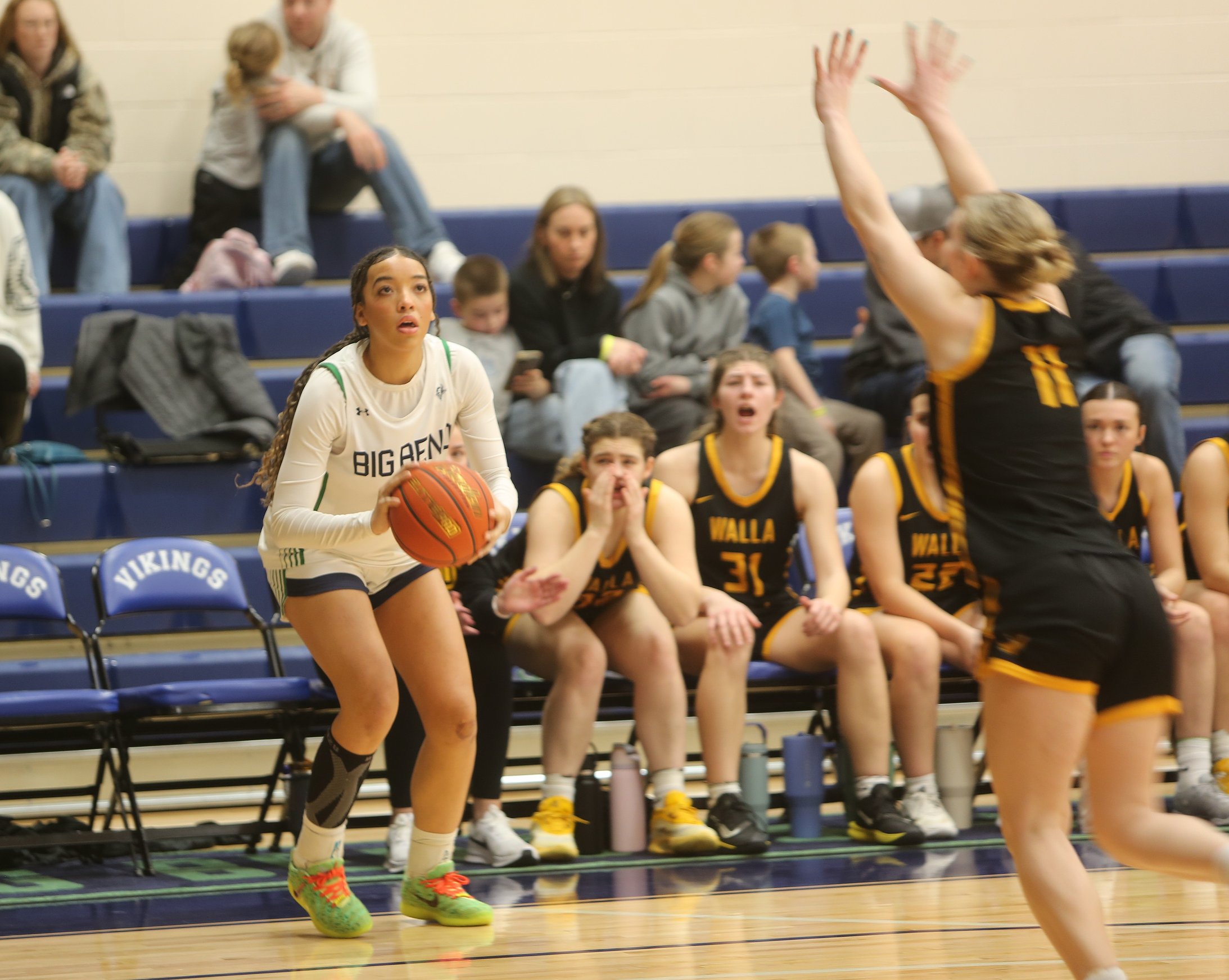 The first half was a low-scoring affair as both teams brought their best defensively. While Walla Walla excelled at getting rebounds, the Vikings created a defensive wall at the other end behind Oaklie Jackman, Saydee Pebley and Ashlynn Purcell. Each had at least one blocked shot, with Purcell logging two for BBCC.