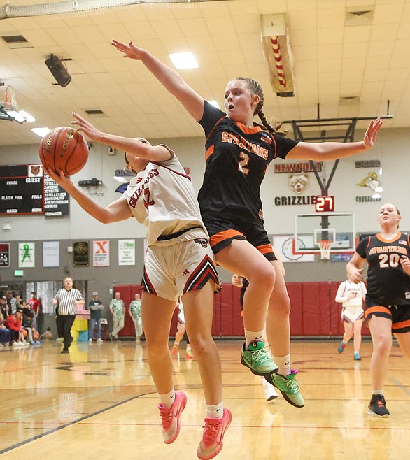 NEWPORT — Sophomore McKinley Burgess-Duquette erupted for a double-double of 20 points, 10 in each half, and 21 rebounds to go along with four steals, junior Haylee Jepson-Church drained two 3-pointers and scored 10 of her 12 points in the first quarter, and the Lady Spartans used a 20-0 run between first and second quarters to take down the Lady Grizzlies in a non-league matchup held Friday night at Newport High.