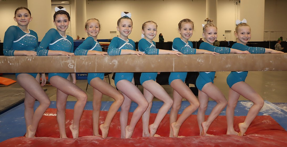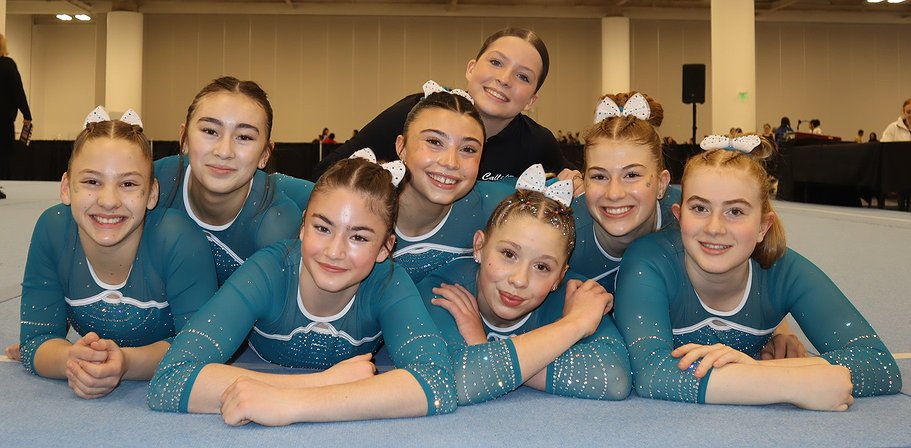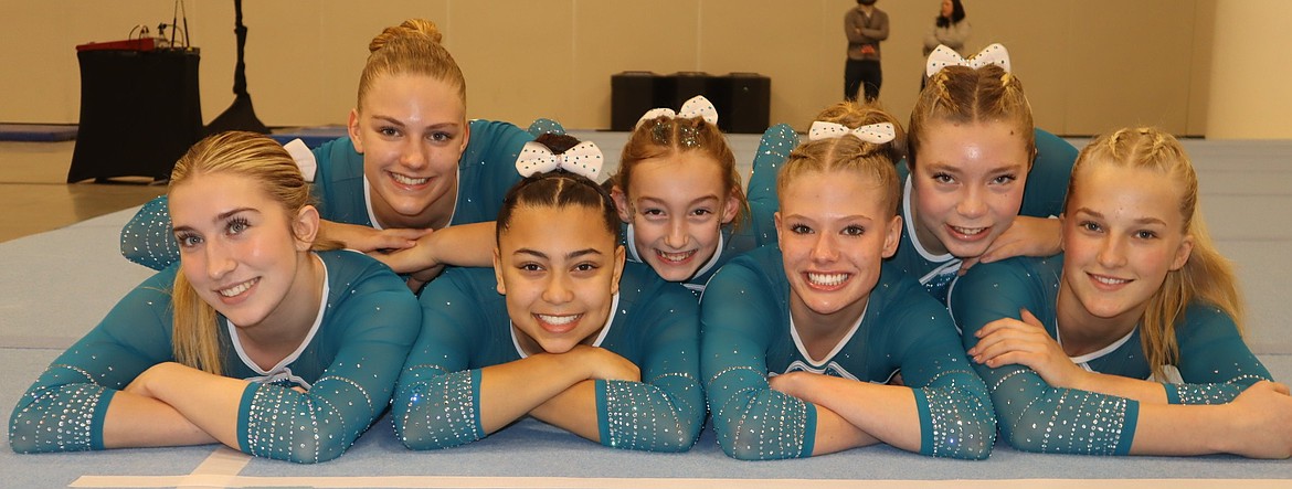 Courtesy photo Avant Coeur Gymnastics Level 6s at the Next Era Meet in Seattle. From left are Brooklyn Adams, Teagan Heimbigner, Eve Seaman, Harper Loscalzo, Shea McGinnis, Aella Stewart, Bow Babowicz and Lydia Mohr.