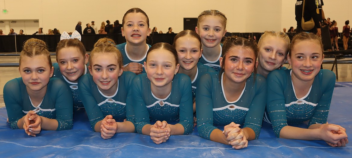 Courtesy photo Avant Coeur Gymnastics Xcel Golds at the Next Era in Seattle. In the front row from left are Ella Stone, Emily Good, Everly Reed, Sydney D'Avanzo and Bella Nivison; second row from left, Katy Grantham, Amy Edgerly and Adelyn Etheridge; and back row from left, Venice Crawford and Lacey Bitnoff.