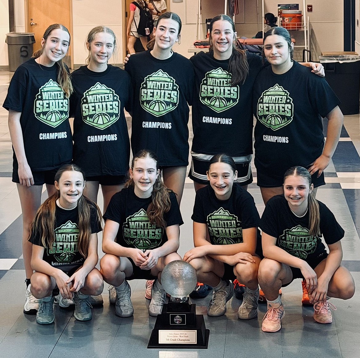 Courtesy photo The Hooptown Blazers 2031 AAU girls basketball team won the 16-team seventh grade girls division at the Winter Select Series West Coast Championships last weekend in Seal Beach, Calif. There were teams from all over the West (Colorado, Arizona, California, Oregon, Nevada). On Saturday the Blazers defeated the Primo Lady Soldiers and Las Vegas Bulldogs. On Sunday in the semifinals, they defeated FOH out of Seattle, Washington. In the championship game, the Blazers trailed most of the first half vs Team Prodigy, and after a back-and-forth in the second half, the Blazers pulled out four-point victory. In the front row from left are Paxtyn Oestreich, Jayde Jeske, Addy Pendergraft and Addi Salas; and back row from left, Kyal Carlson, Reagan Posthumus, Brylee Brown, Ellie Rohrbacher and Elie Montes De Oca.