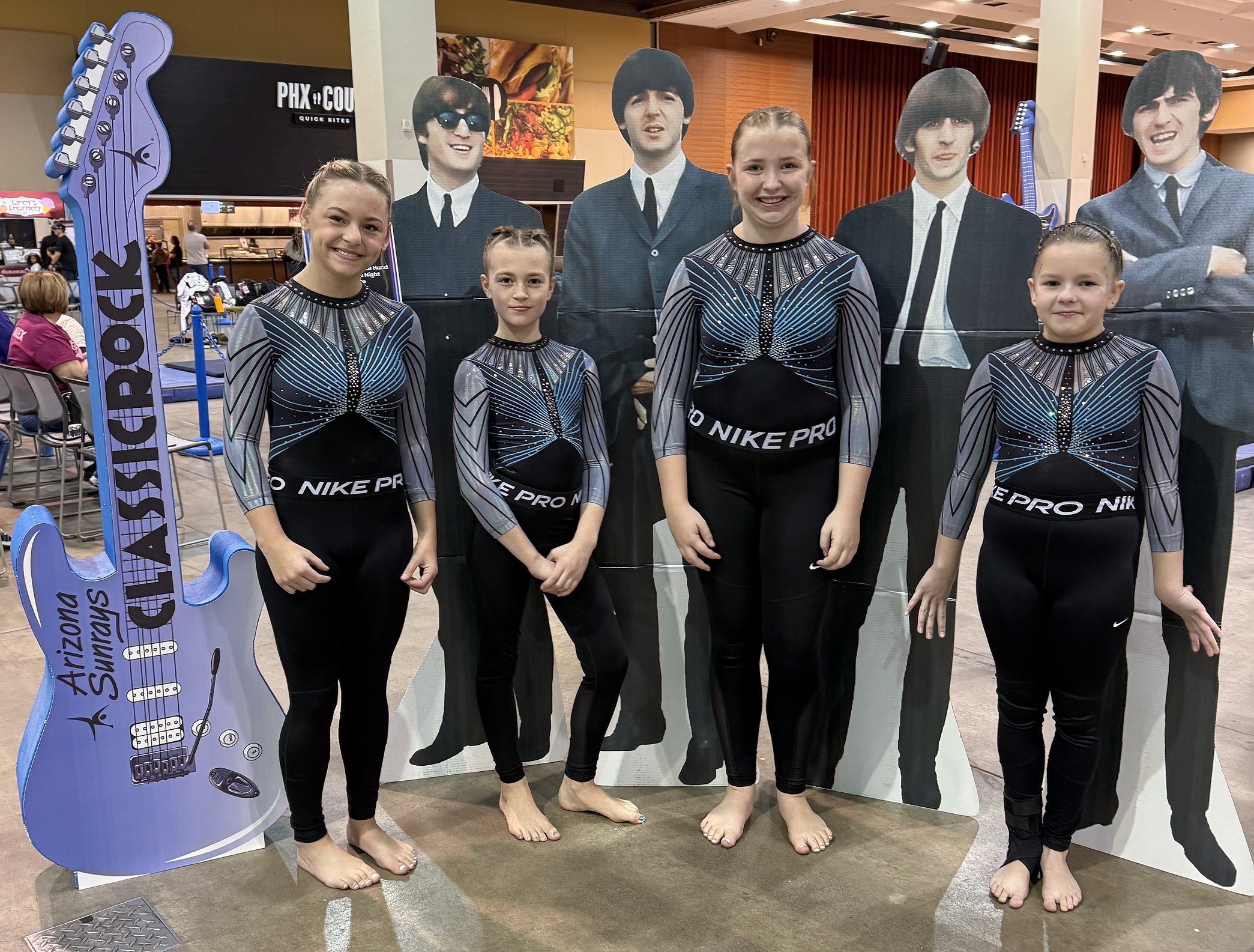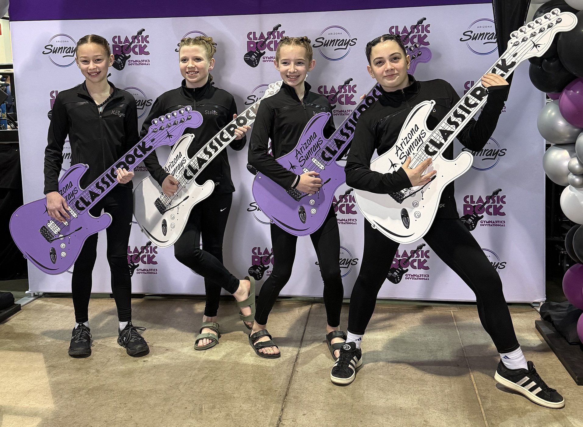 Courtesy photo Technique Gymnastics Level 6s attended The Classic Rock Invitational in Phoenix. From left are Katelynn Montandon, high score on Bars 8.925; Stella Casey, 6th on Bars 8.825, 6th All-Around; Keira Williams was the Bars Champion with a 9.275; and B Lorion 4th on Beam 9.275.