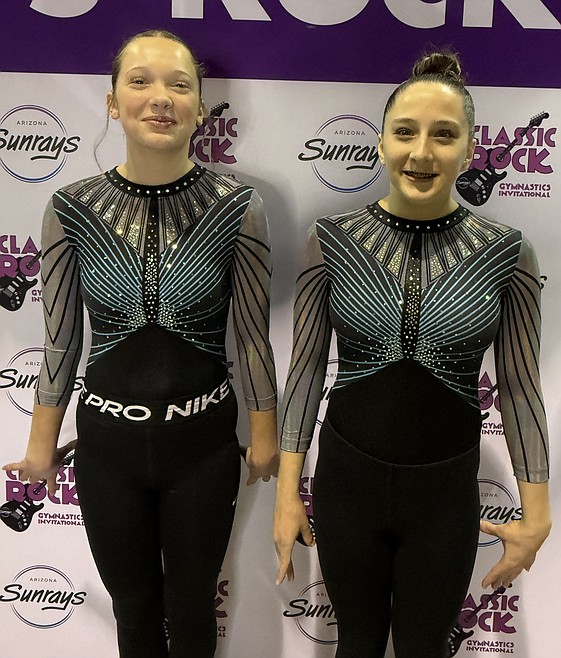 Courtesy photo Technique Gymnastics Xcel Diamonds attended The Classic Rock Invitational in Phoenix. From left are Melodie Wurster, 4th on Vault 8.85, 6th on Bars; and Taylynn Lee high score on Beam 8.55.