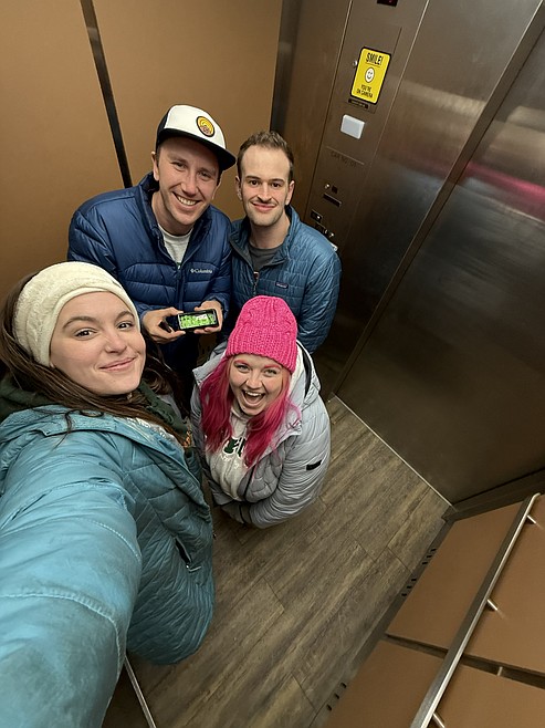 Keaton Grove, Phoebe Guercio, Brooke Paris and Bryant Griffith found the treasure this week before work. It was found under the stairs on the third floor of the parking garage in downtown Whitefish.