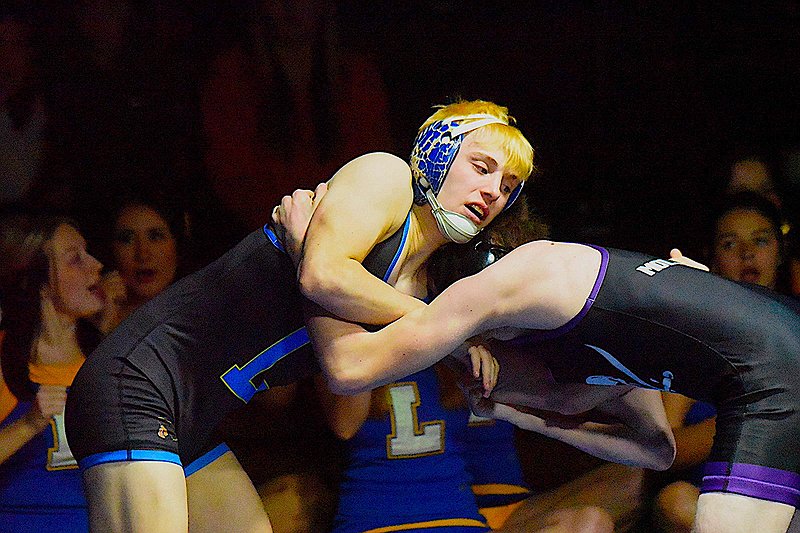 118-pounder Bridger Bache trailed Wyatt Moldenhauer 3-0 before rallying to take a 5-3 after two periods. One more takedown led to Bache pinning his opponent for an 18-0 Libby lead.
