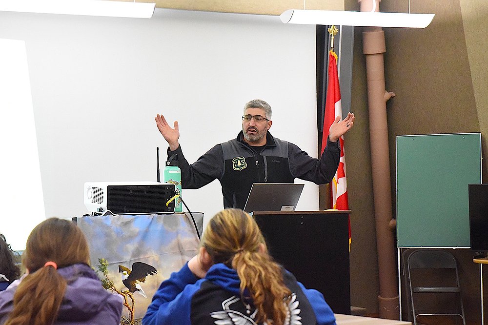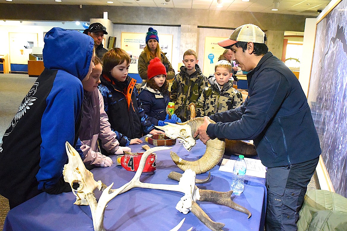 Students were split into small groups that rotated through five different learning sessions. Those included horns and antlers, mining, winter tracks walk, snow survey as well as fire safety and snacks.