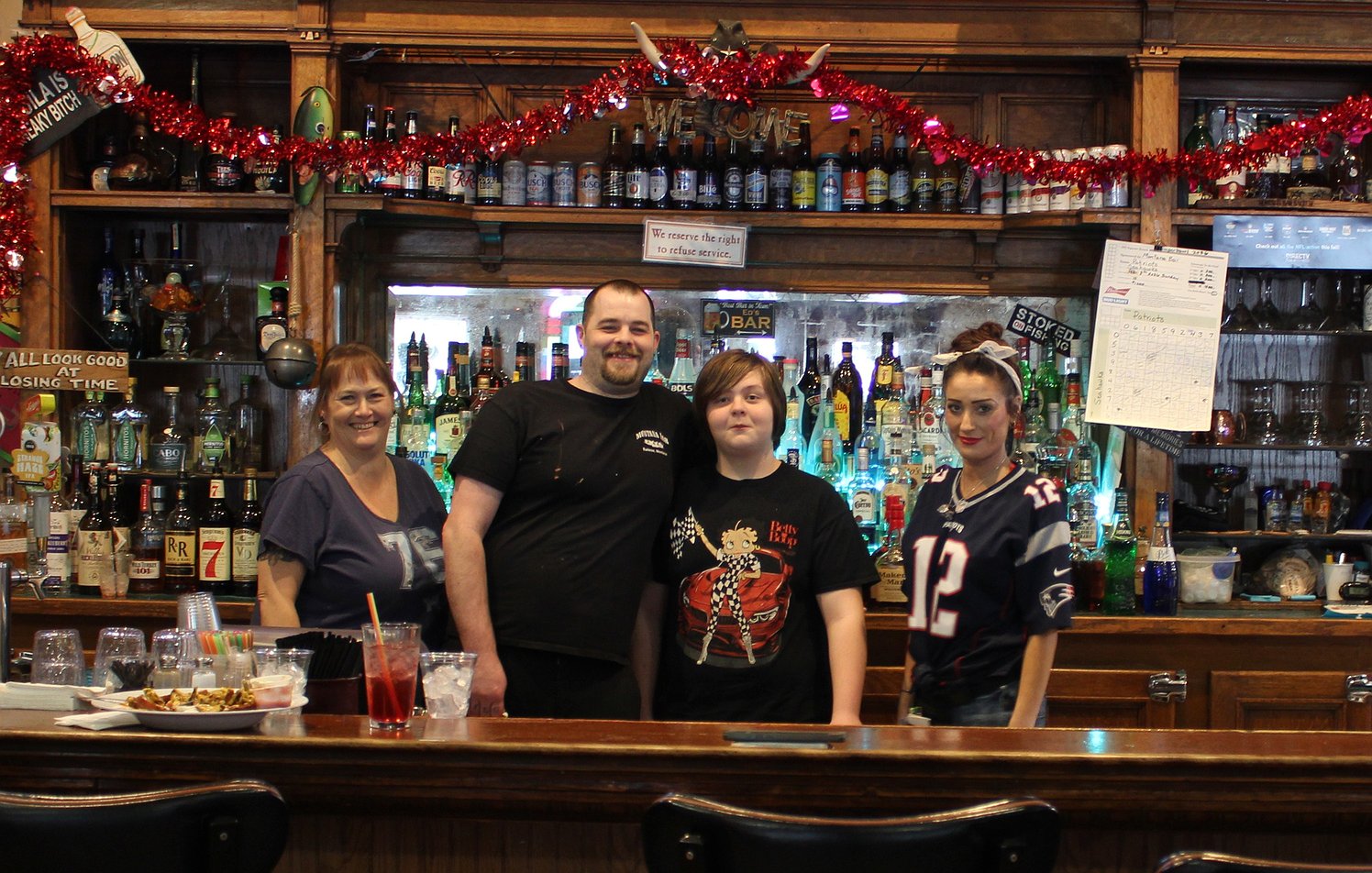 The Talking Bird in St. Regis kept things cozy with a nacho bar, casseroles brought in by patrons, and plenty of desserts. Prizes were given away at halftime, Jello shots flowed throughout the game, and notably, not a single New England Patriots fan was spotted in the crowd. Just a mile away at the Doghouse Saloon, the vibe was low-key with a potluck of pulled pork and baked beans.