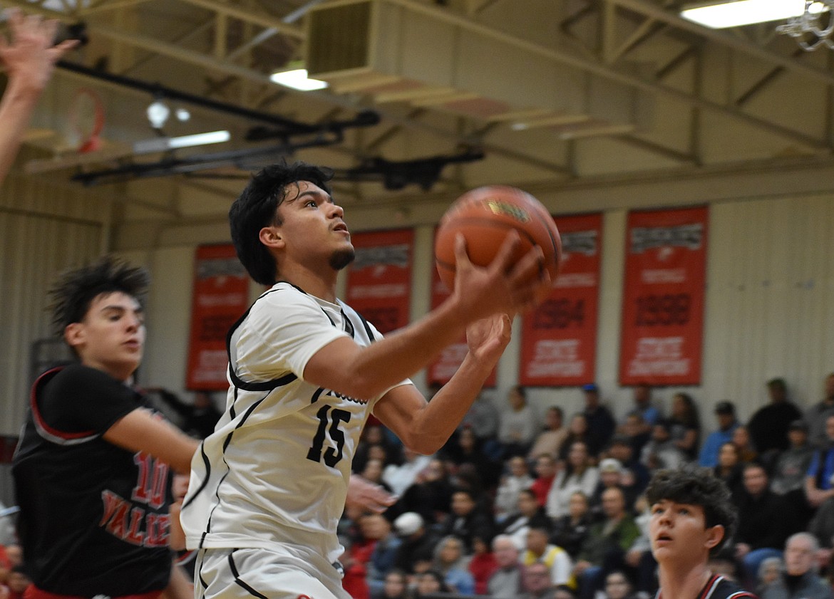 OTHELLO — After an 0-20 conclusion to their 2024-25 season, the Othello Huskies (9-13) earned their first playoff win in years over East Valley Wednesday evening. The matchup was a nailbiter throughout as the two teams traded blows, but the Huskies pulled ahead to win 81-75.