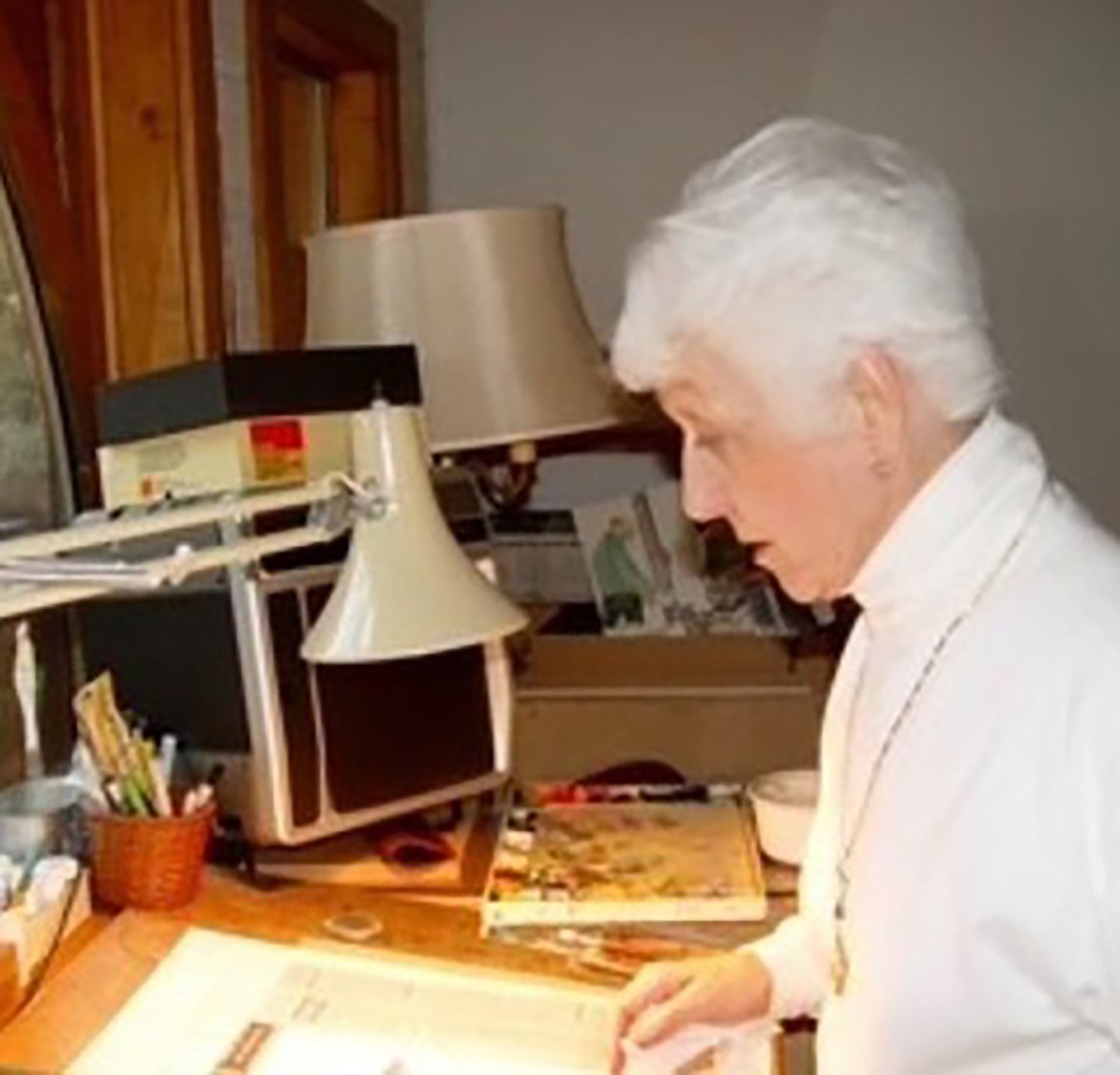 Jean was a well-known artist in the Northwest. Though the acclaimed Mace Gallery is no longer in operation, a watercolor series commissioned by the State of Idaho depicting six Boundary and Bonner County waterfalls can be seen at the Columbia Bank Building in Sandpoint, Idaho. Jean signed her most recent work, “WJD Mace.”
