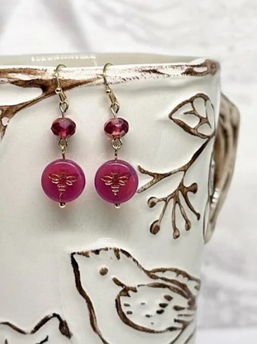 She decided to give it a try. After being disappointed in the quality of the beads she found in local craft stores, she started sourcing beads from around the world. She discovered glass beads from the Czech Republic and then porcelain earring charms made in Spain. To round out her offerings, she began sourcing hammered metals from Istanbul that pair nicely with the bright, shiny glass beads.