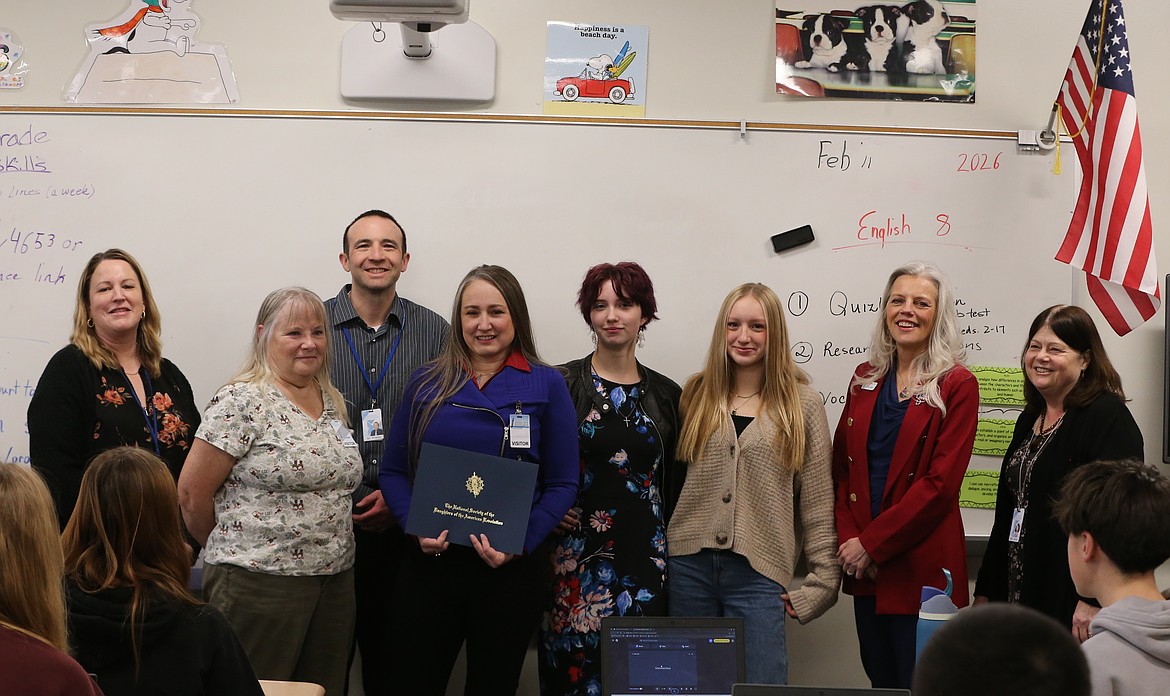 She was celebrated in class on Thursday, Feb. 12, as DAR Pleasantview Chapter Regent Trina Caudle presented her with a bronze medal, a certificate and a monetary prize.