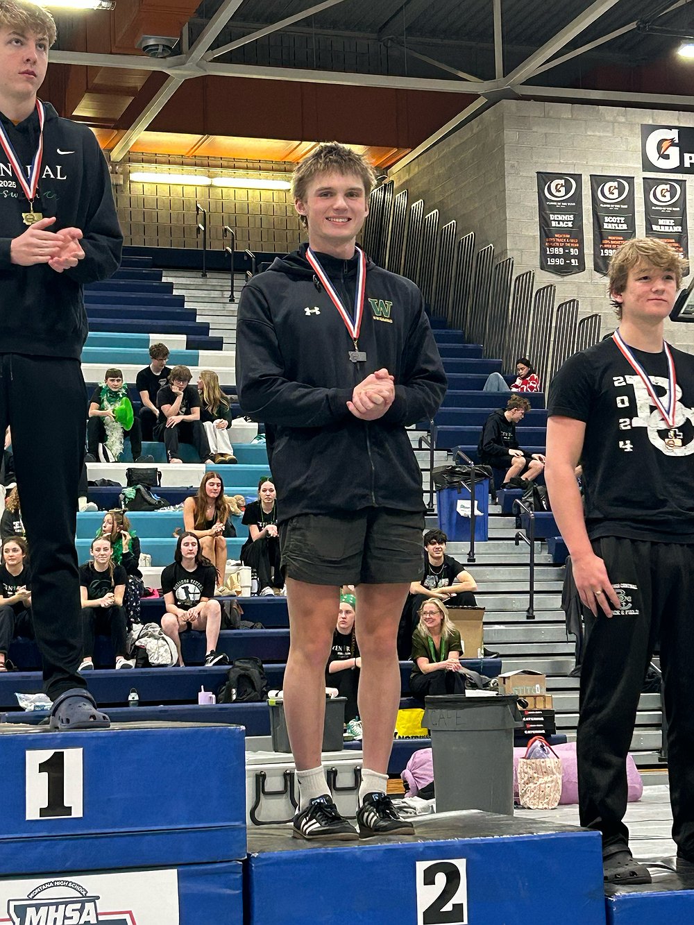 Senior Logan Hyland also qualified for finals twice, taking fourth in the 50 freestyle and fifth in the 100 breaststroke. Freshman Nathan Sibson had solid finishes in the 200 I.M. and 100 backstroke, taking fourth and fifth, respectively.