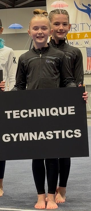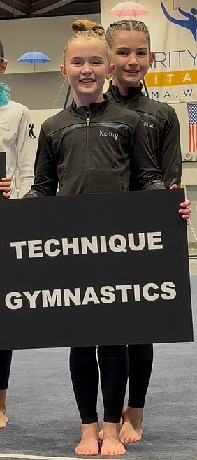 Courtesy photo Technique Gymnastics brought its two Level 5s to The Charity Choice Invitational in Tacoma, Wash., last weekend. Mackenzie Brockett, left, was 5th on vault 9.05, 7th on beam 8.7, and 8th all-around 35.325; and Apollonia Bell was 4th on vault 9.1, 8th on bars 9.125, 5th on beam 8.8, 6th on floor 8.95, and 6th all-around 35.975.