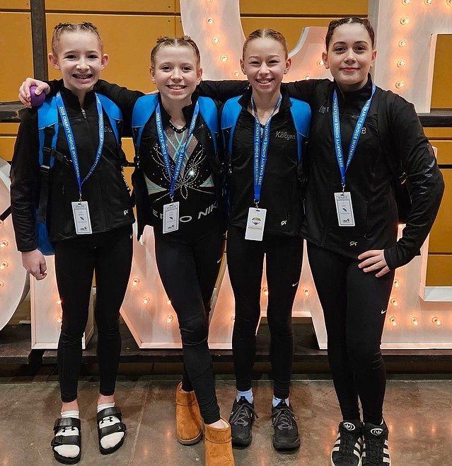 Courtesy photo Level 6s from Technique Gymnastics traveled to The Charity Choice Invitational in Tacoma, Wash., this past weekend. From left, Keira Williams was 8th on Beam 8.8; Stella Casey had a high score of 8.75 on vault, beam, and floor; Katelynn Montandon had a high score on floor 8.7; B Lorion was 2nd on Beam 9.45, and 8th all-around 36.025.