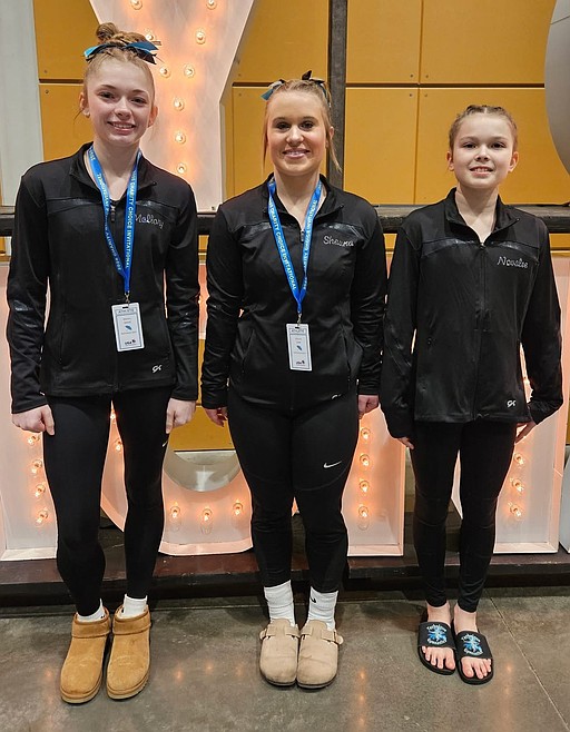 Courtesy photo Technique Gymnastics Level 7s attended the Charity Choice Invitational this past weekend in Tacoma, Wash. From left, Mallory Secord had a high score on vault 8.475; Shauna Clark was 6th on beam 8.825, 5th on floor 9.3, and 6th all-around 35.075; and Novalee Brock was 2nd on vault 9.15, 1st on beam 9.375, 5th on floor 9.325, and 4th all-around 36.35.