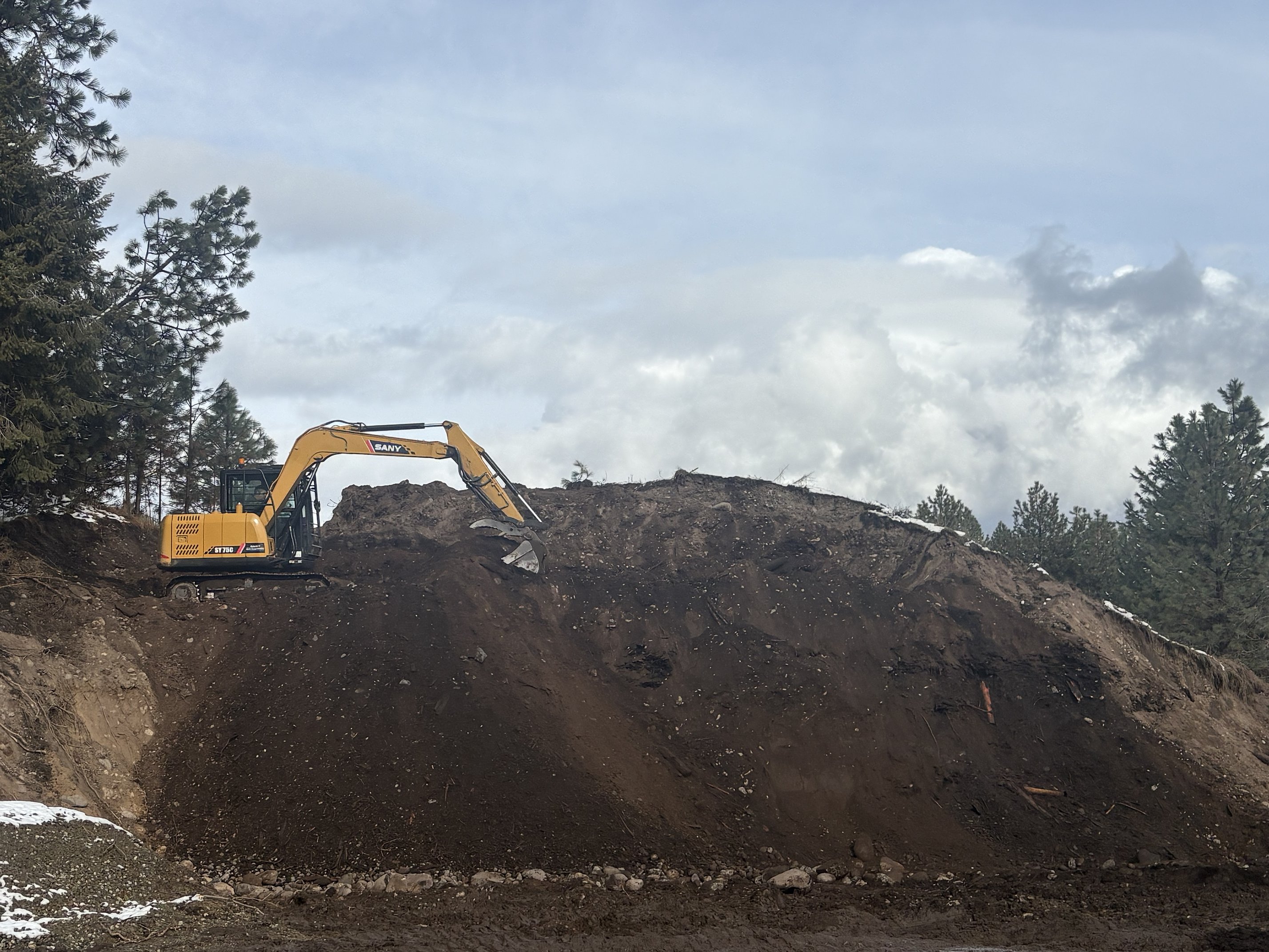 “I brought the excavator down and cleaned some trees off that were up here on top of this mound, and hauled those off, dug a couple of trenches around the outside,” Moyie Springs Public Works Superintendent John Nelson said.