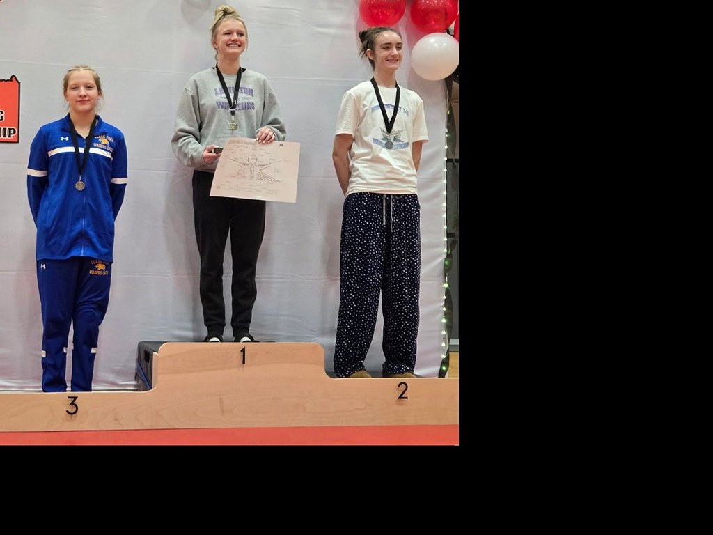 100 — Championship: Murphee Balich, Coeur d’Alene, md. Mackenzee Donenfeld, Sandpoint, 21-8. Third place: Kahlen Tonevold, Kootenai. 105 — Championship: Paylynn Childers, Moscow, p. Jaiden DeTienne, Coeur d’Alene, 0:30. Third-place match: Teagan Patrick, Lakeland, d. Emilie Farley, Potlatch, 9-8. 110 — Championship: Rhaelyn Schedlbauer, Sandpoint, p. Jasmine Soto-Wolson, Post Falls, 4:46. Third place: Violet Henney, Sandpoint. 115 — Championship: Hunter Edmondson, Lakeland, p. Vada Hutchinson, Post Falls, 3:42. Third-place match: Haydin Randall, Lewiston, p. Isabella Symons, Sandpoint, 1:39.